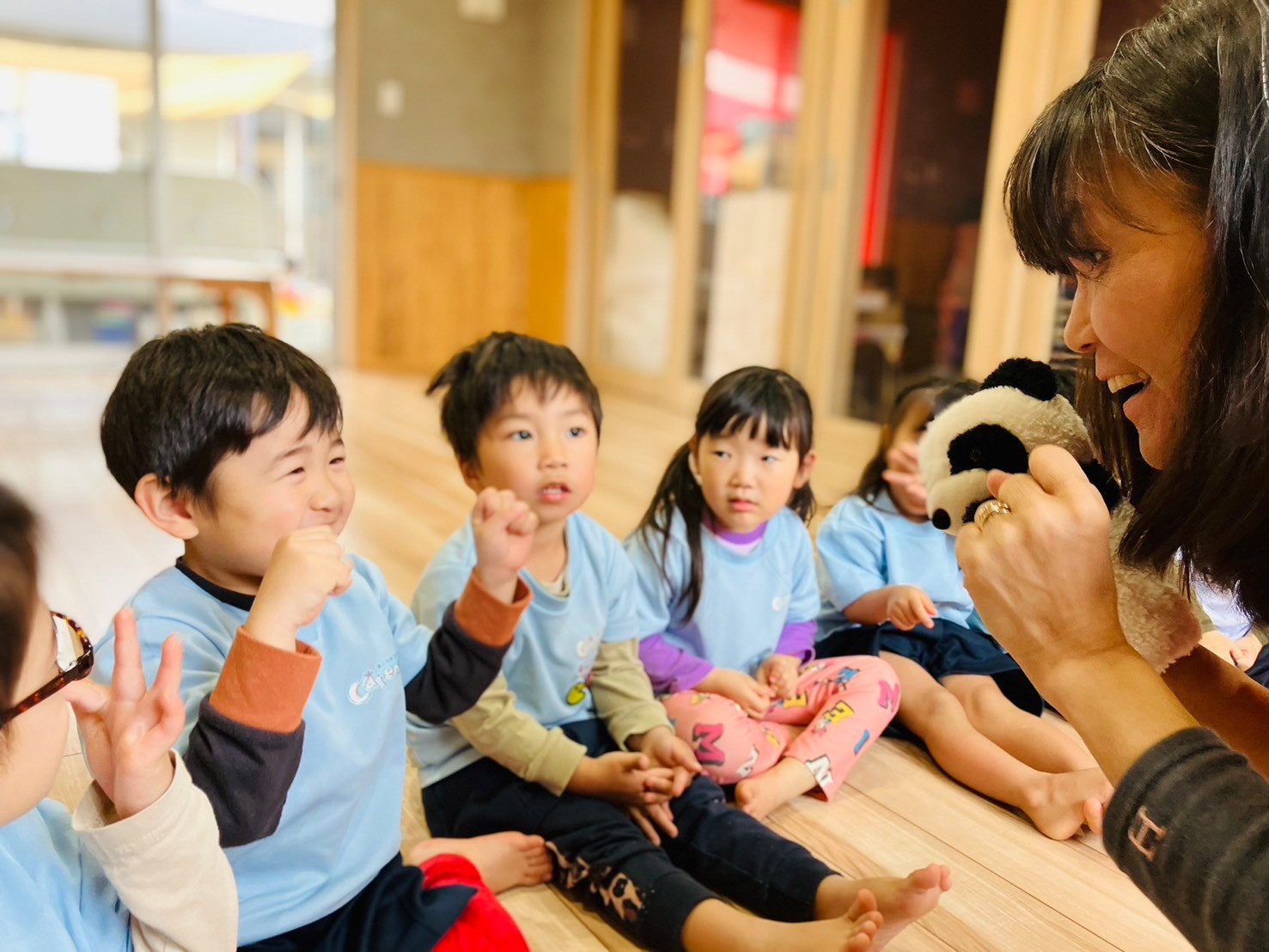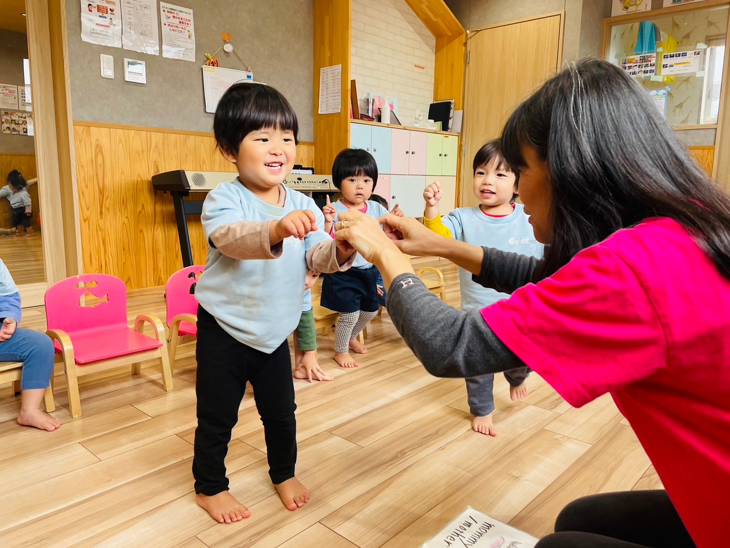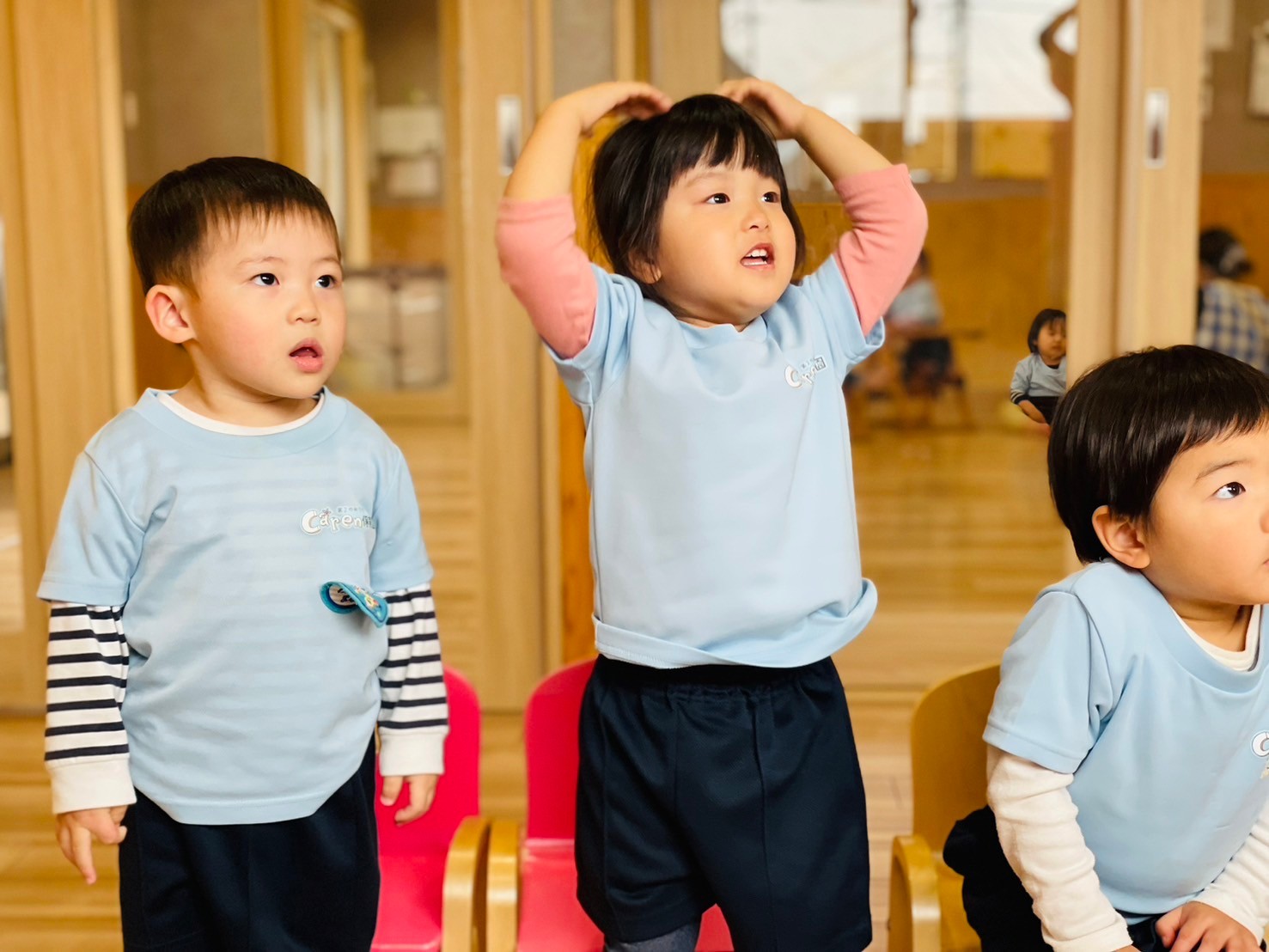 「あたまかたひざポン」の歌や指の手遊びを英語の歌に合わせてして、楽しみました💕