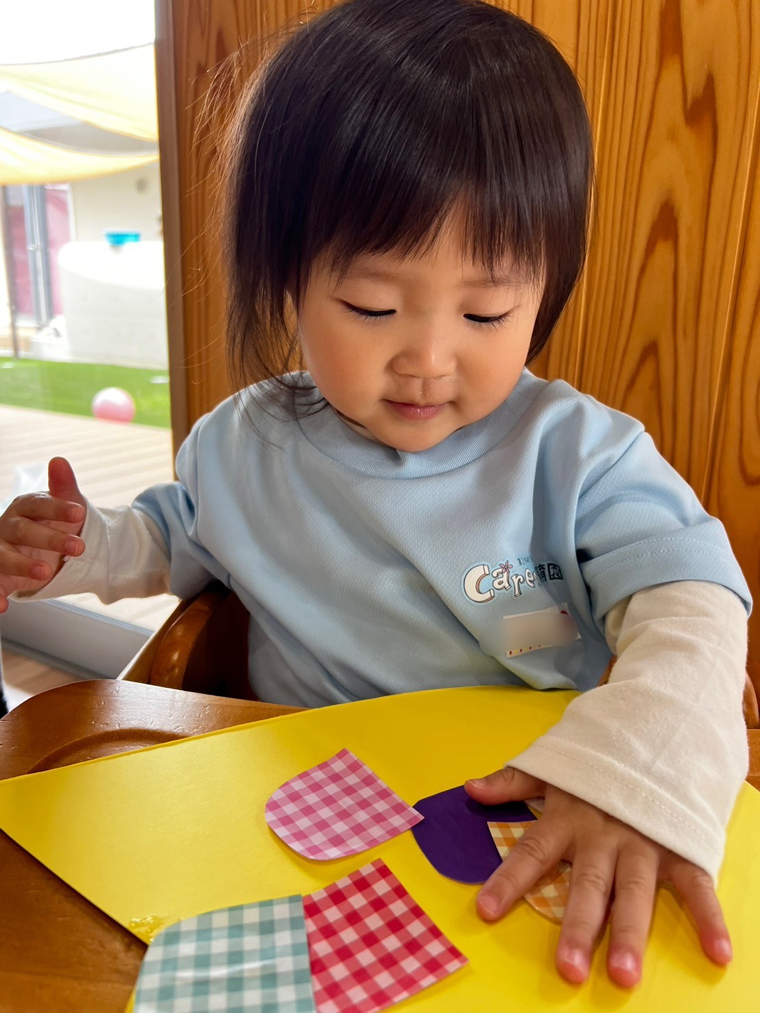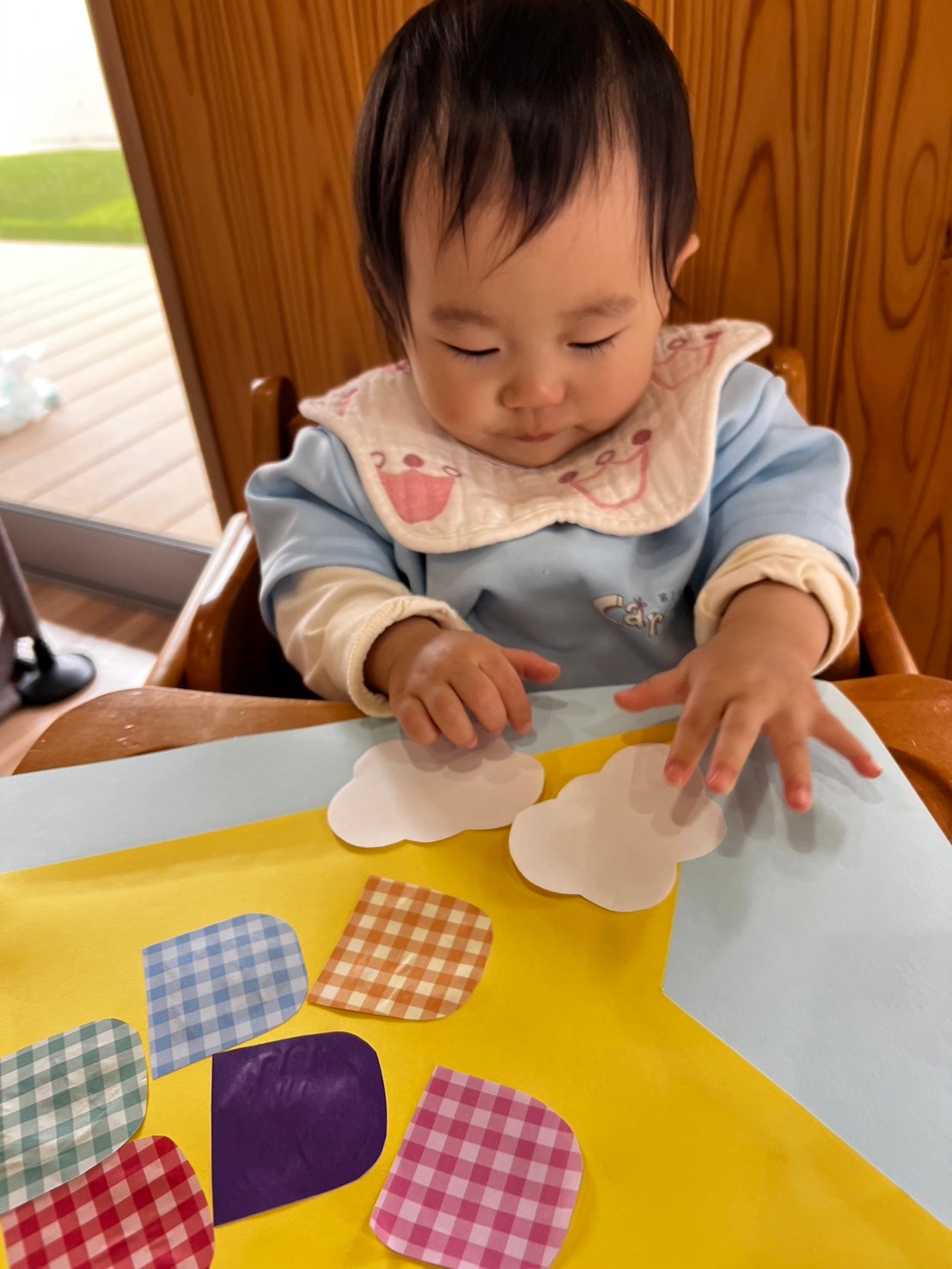 5月の鯉のぼり🎏制作もしましたよ!のりを使って好きな場所にペタペタと貼って、トントントンと手で抑えて可愛い鯉のぼり🎏ができました🍀ぱんだ組🐼