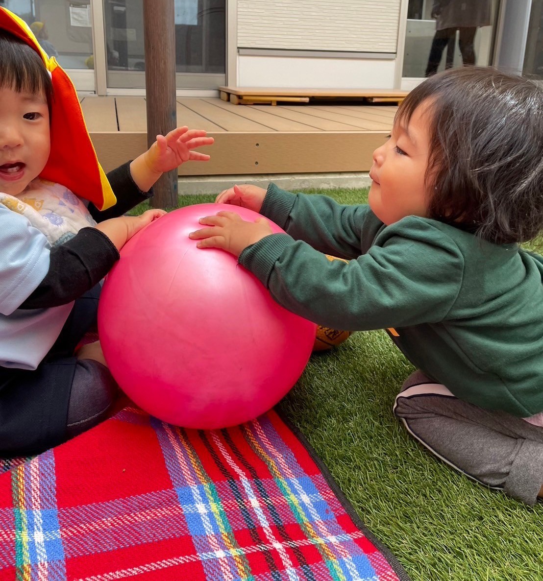 今日は園庭で遊びましたよ😌☀️✨ お外をお散歩しているパンダ🐼組さんに手を振ったり、ボール遊びをして楽しみました💕