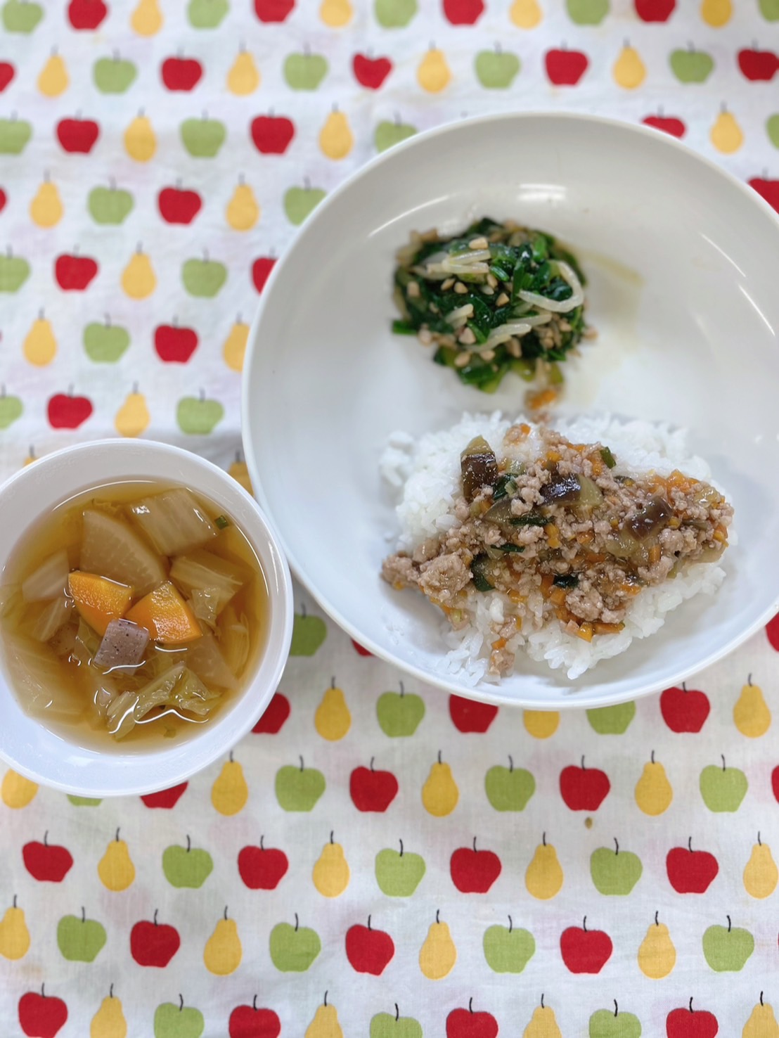 「〇〇に行くんだ〜!」や「じぃじとばぁばがくる!!」など楽しみな予定の会話が飛び交う1日でした😊また連休開けにみんなのお話聞けるが楽しみです🥰体調に気をつけて楽しく過ごされてくださいね😊💖【くりえいと園の今日の給食です】
