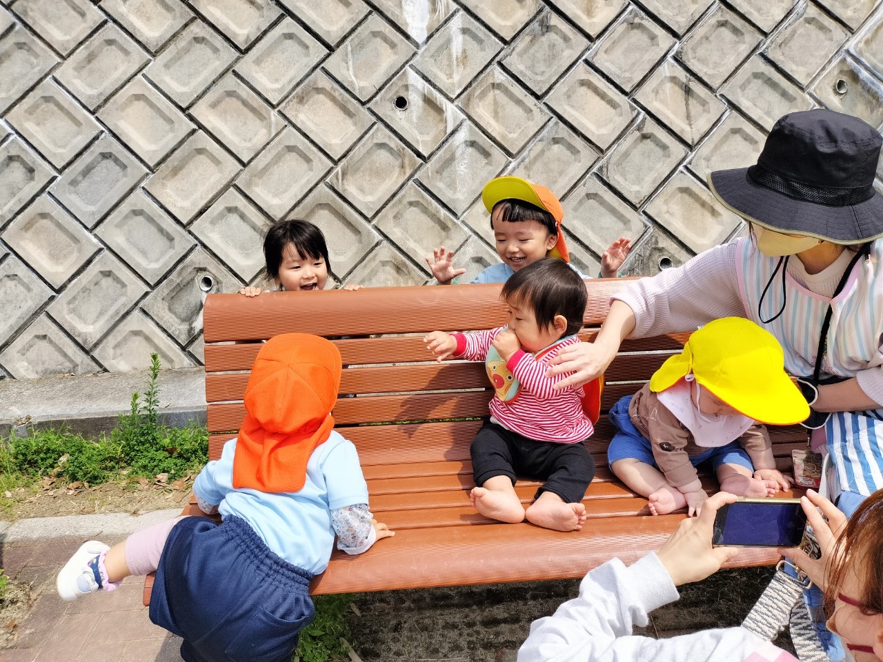 公園では、ベンチに座ったり、虫を見つけて観察したり、お兄さん、お姉さんが遊んでいる姿を見て楽しみました✨