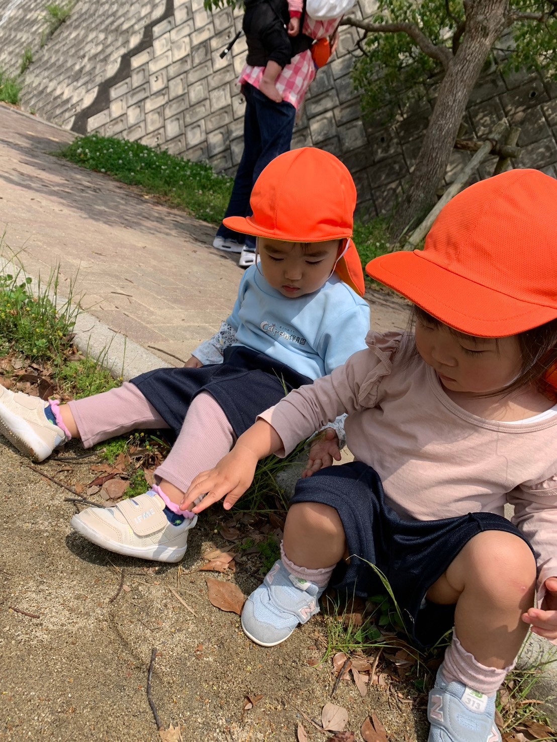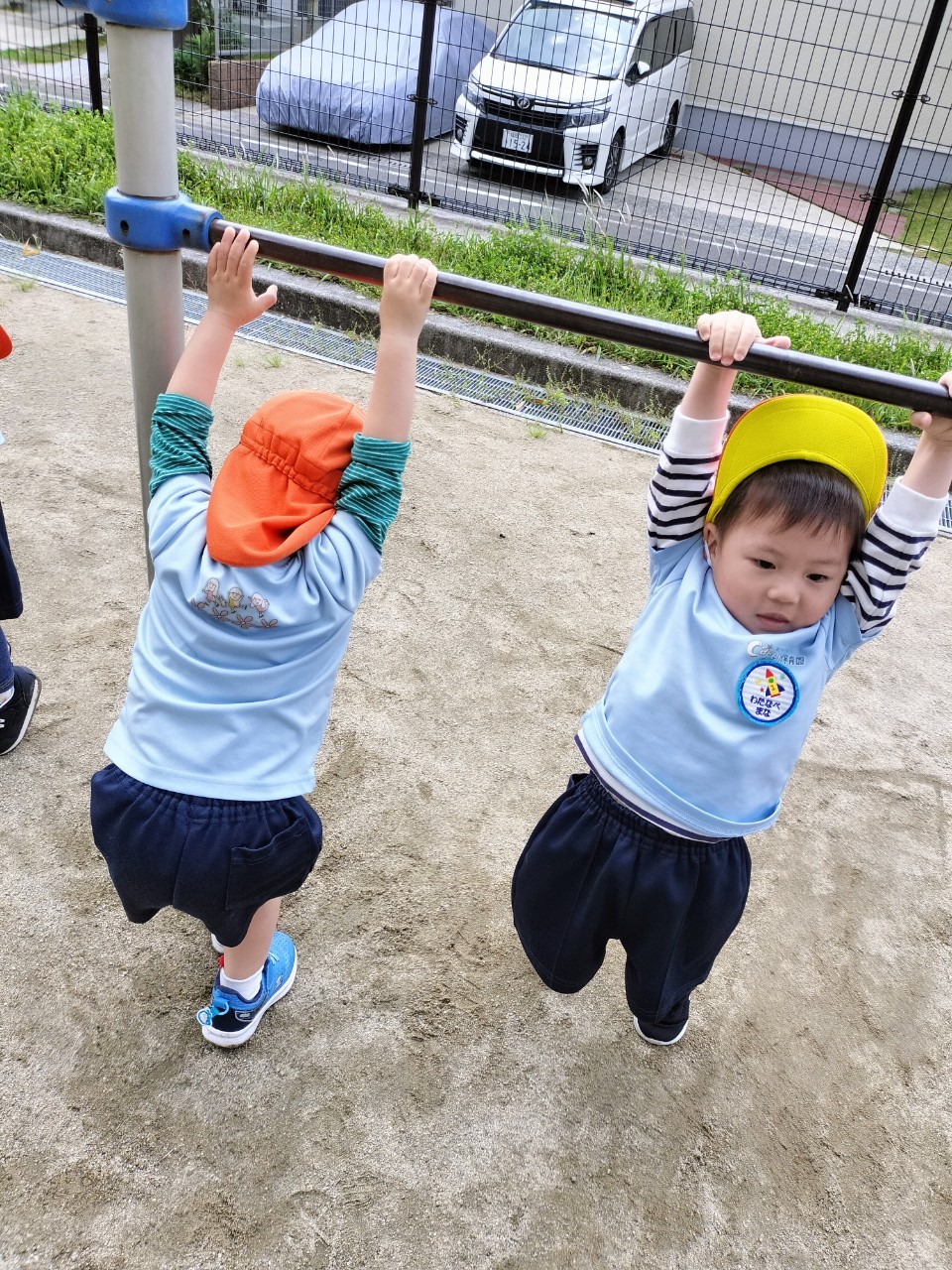 列の後ろにりす組さんが誘導ロープを持っていたので、しっかりとお兄さんお姉さんのお手本になって上手に歩いていましたよ🤗広場について一度水分補給をしてから思いっきり遊びました。鉄棒のぶら下がりをしたりお友達とかっけこをしたり虫を探したりしながら楽しく遊んでいましたよ🤗帰りはみんなで「お弁当バスや🚌バスごっこ」の歌を歌いながら帰りましたうさぎ、こあら、きりん組