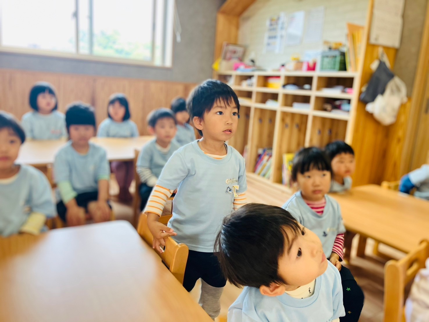 りす組と合同で行った朝の会では、お兄さん、お姉さんのかっこいい姿をしっかり見て、楽しく参加しましたよ✨