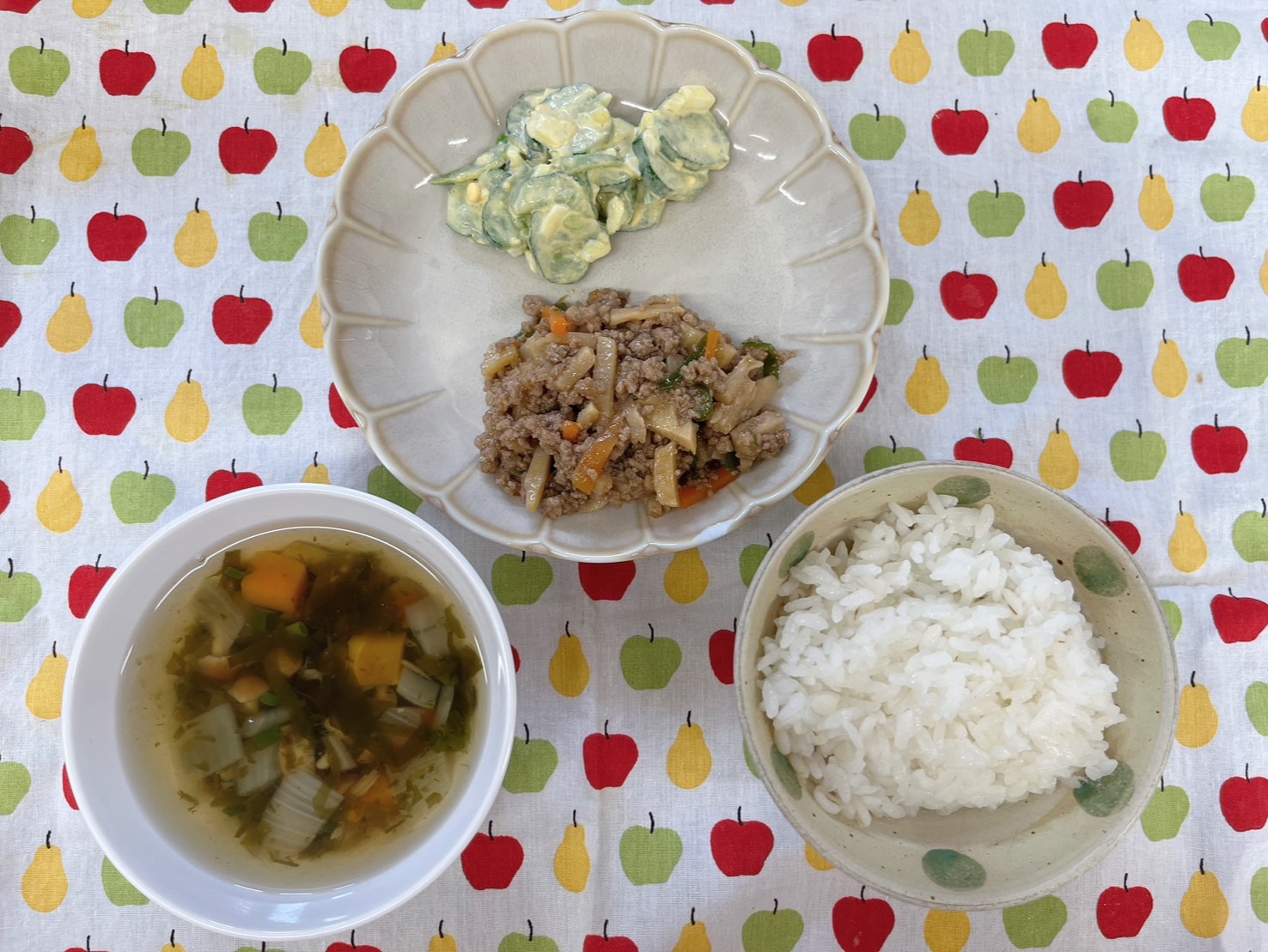 戸外でみんなでボール遊びもし、喜ぶ子ども達でした😊❣️【くりえいと園の今日の給食です】
