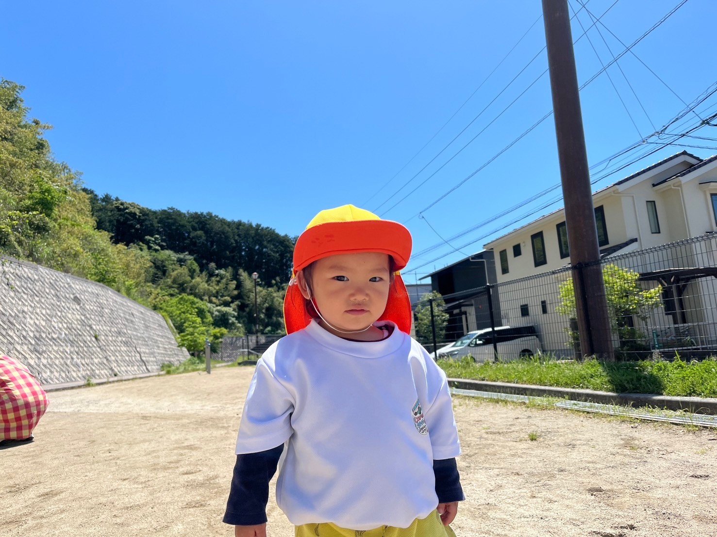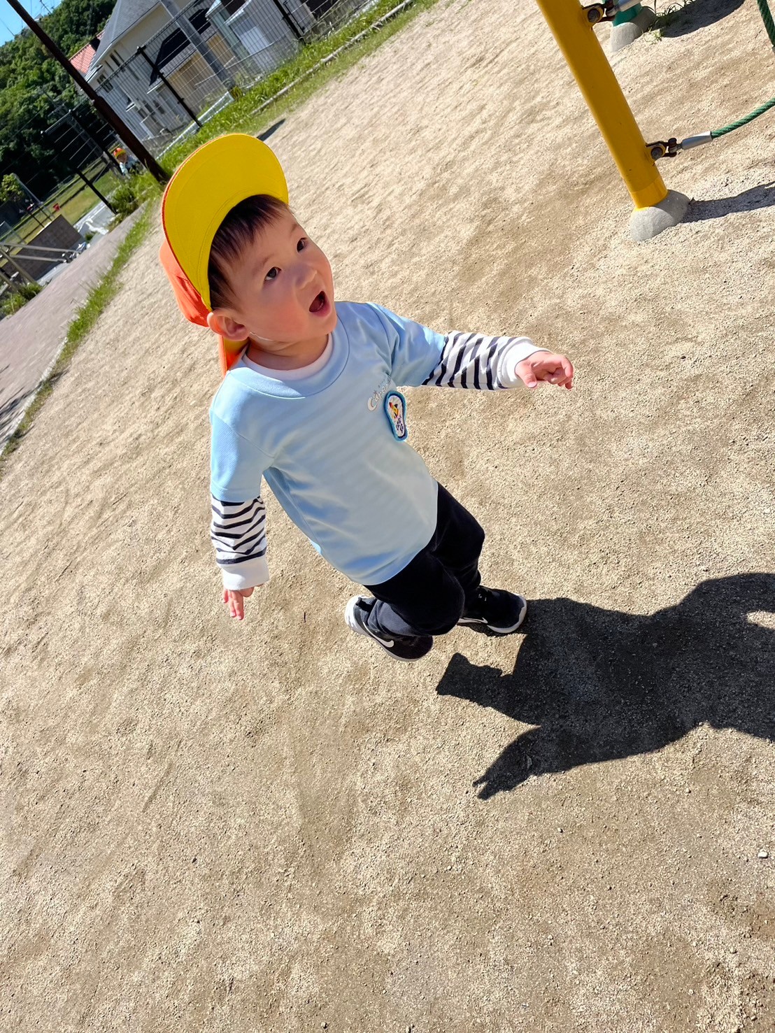 今日はくりえいと北公園に行って遊びました🧢空を見上げたら飛行機雲を発見してみんなで「すごいねー」と言いながら公園まで行き、横断歩道も手をあげて渡ることができてました☺️