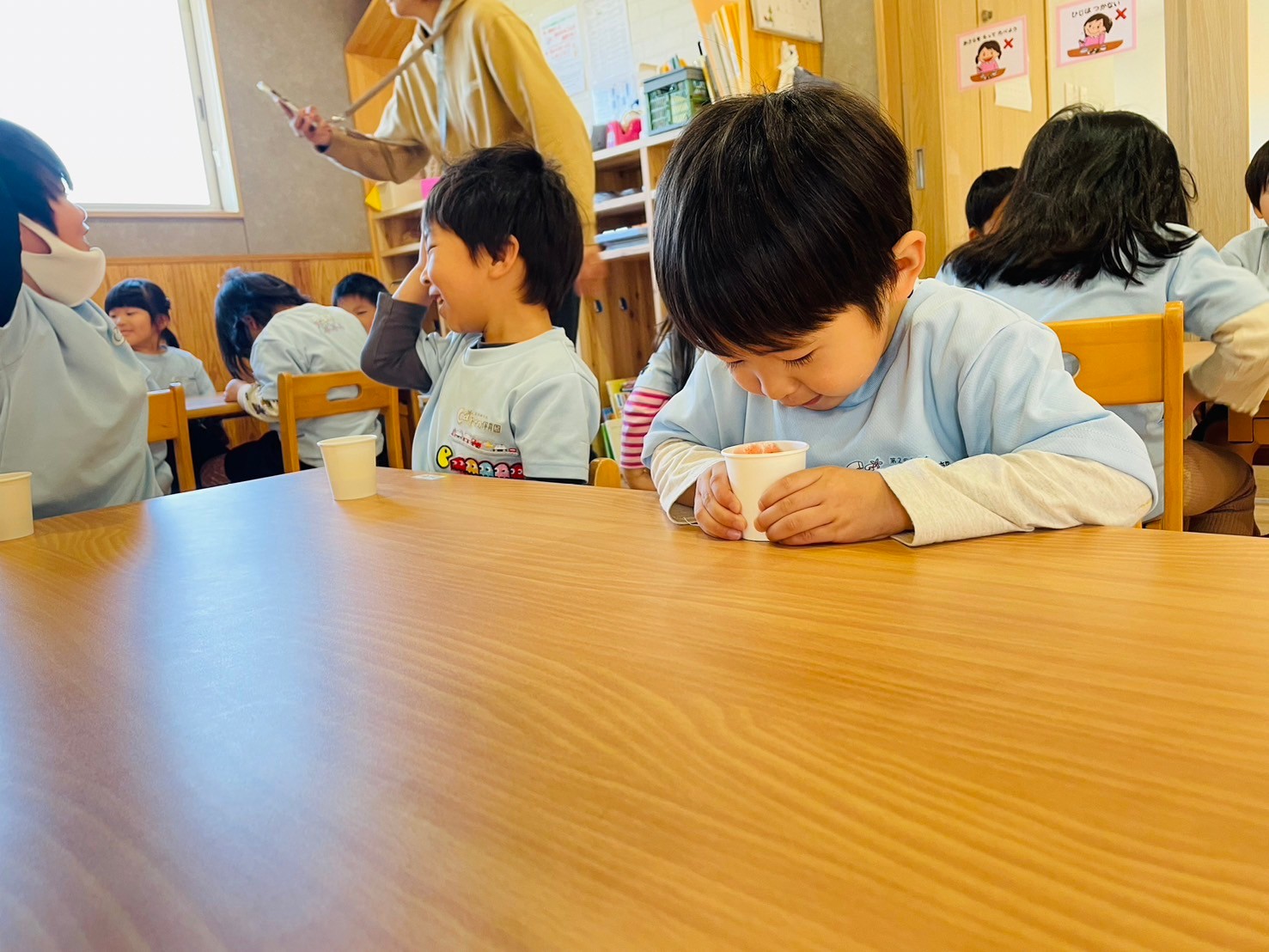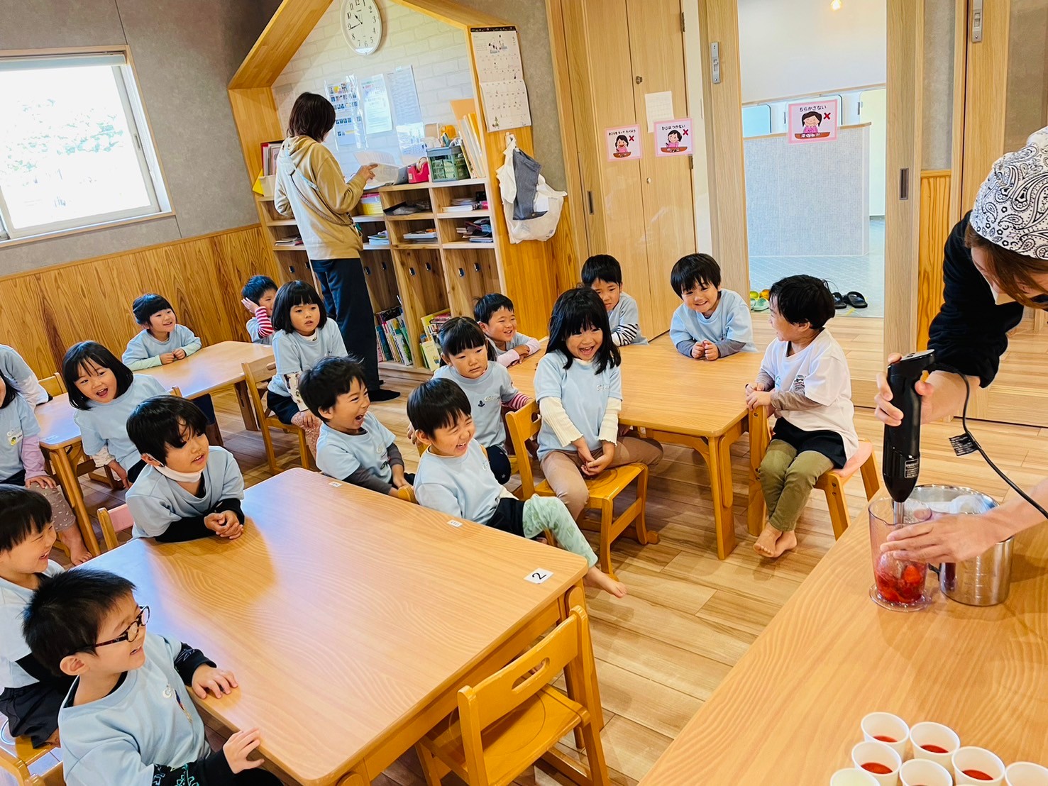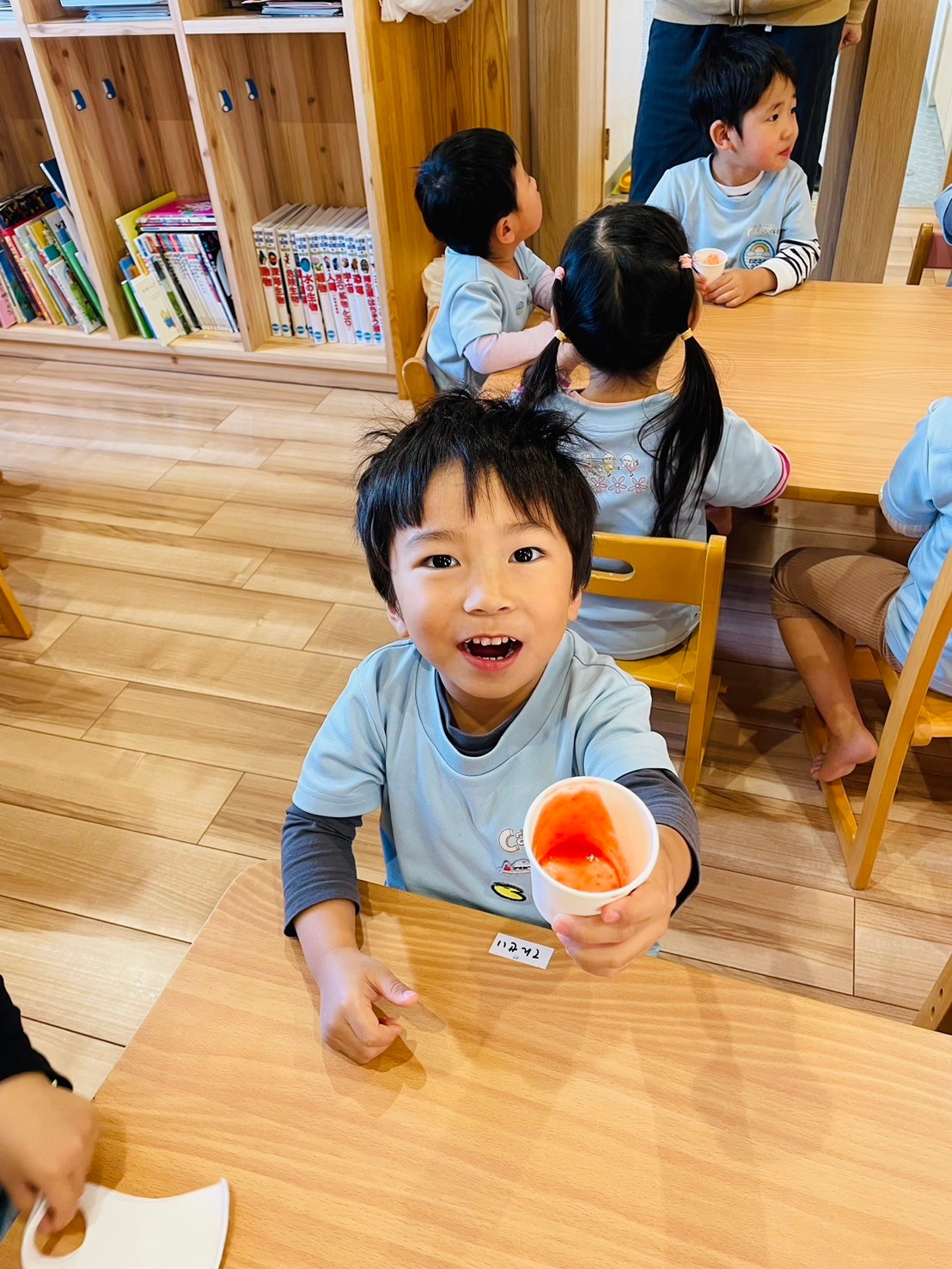 みんなで味見をして「おいしいね〜🍓」と喜ぶ姿が見られました😊