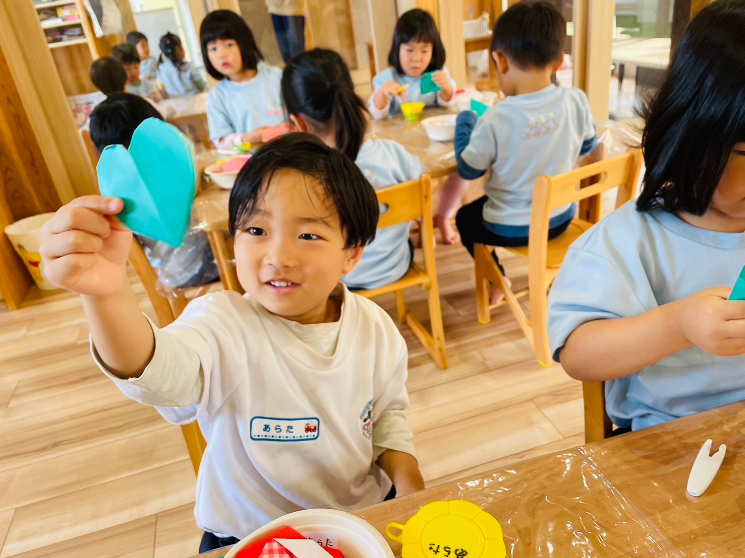 ハサミを使ってクローバーをつくったり台紙に自分たちで配置を考えながらのりで貼り付けて可愛い制作を完成させました✂️✨