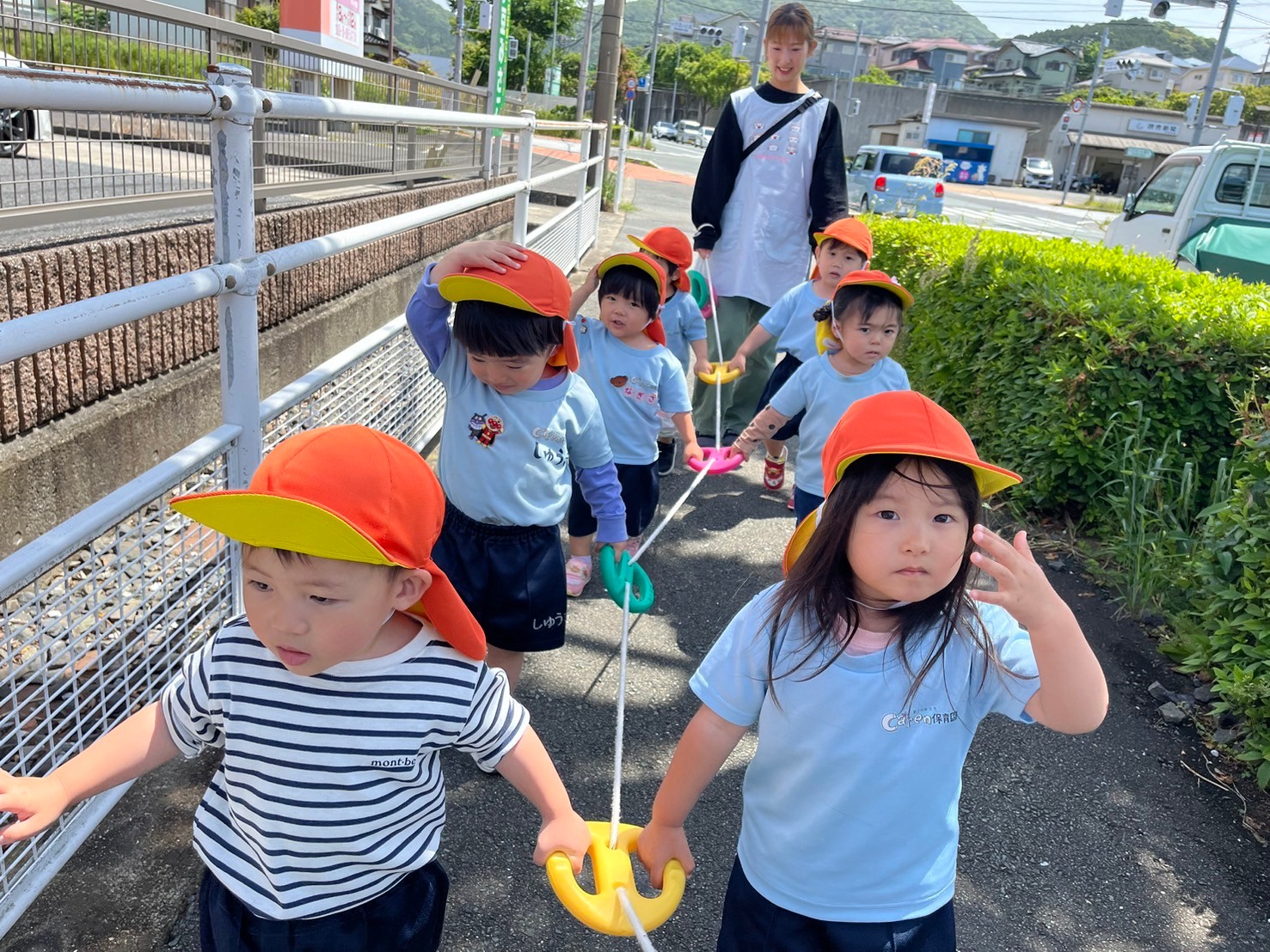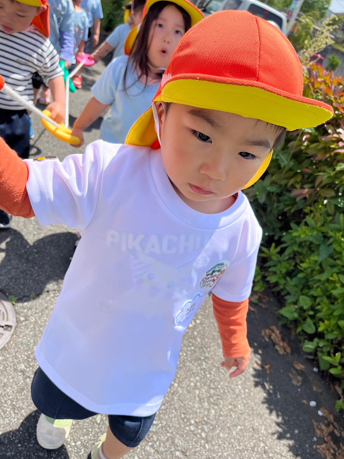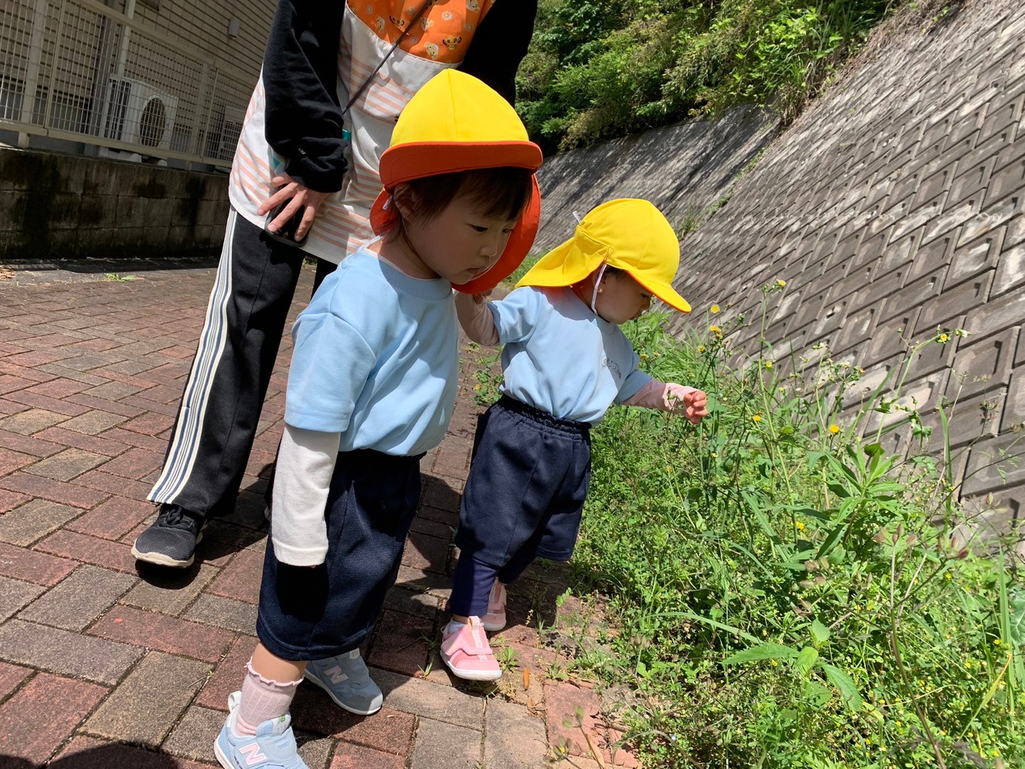 先生と手を繋いで歩くお友だちは足どりも軽く、虫や草花を見つけながら楽しく歩きましたよ😄