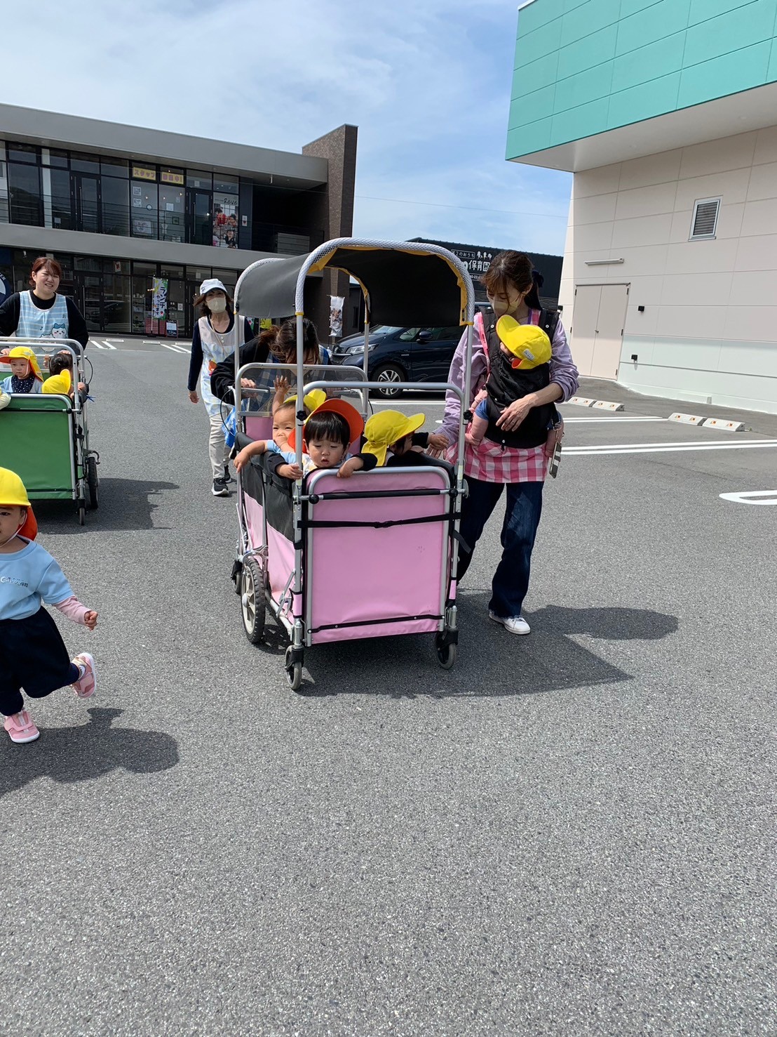カートに乗って車や景色を眺めてウキウキ楽しそう❣️