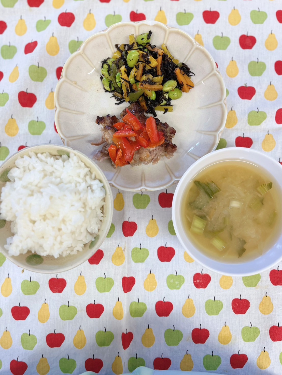 そのあとは園庭でボール遊びをしました💕園庭から見える工事現場に「がんばれ〜!!」と声をかける元気な子どもたちでした🌼【くりえいと園の今日の給食です】