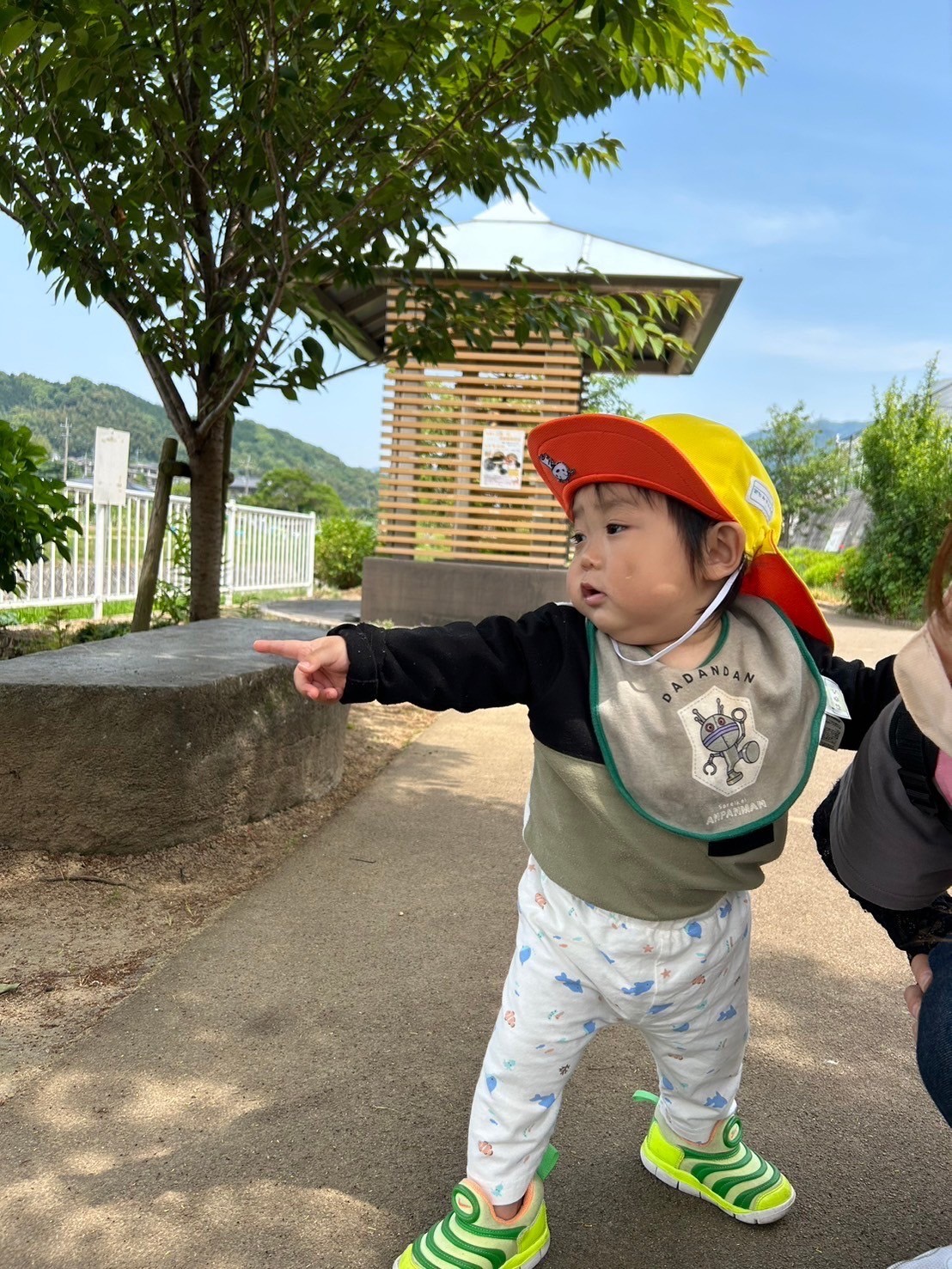 その後、園外に行きてくてくロードまで散歩にいきましたよ🥰抱っこされたり、自分でも手を繋いで歩くこともしました☺️✨始めは歩くのも嫌がりましたが慣れるとあちこち興味津々でした❤️川を眺めたり、ちょうちょ🦋や虫を観察したり自然に触れていきました🤗