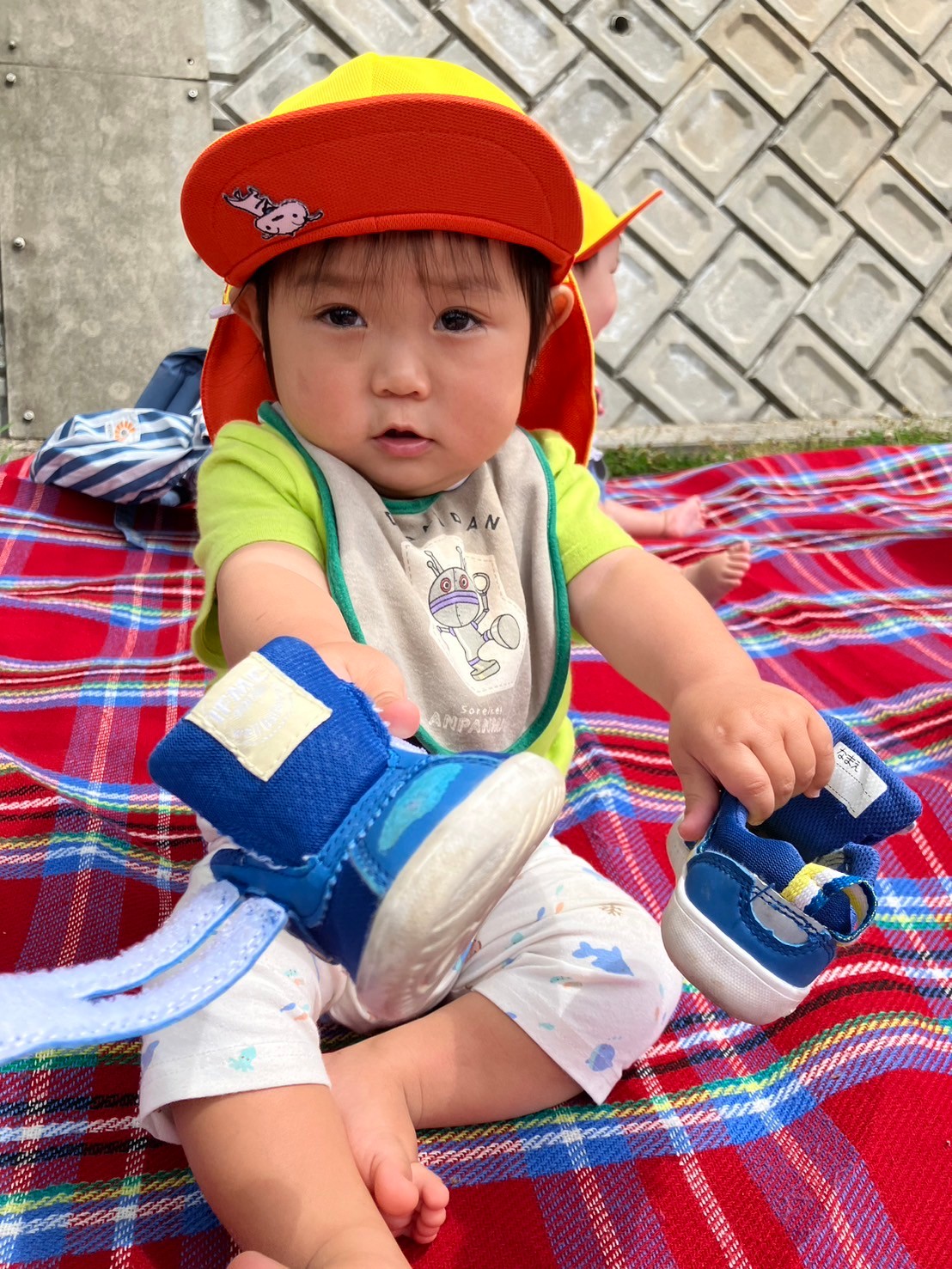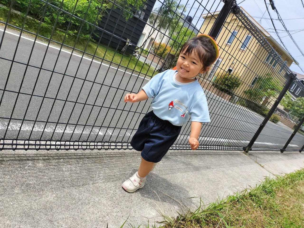 誘導ロープを持って頑張って歩きましたよ✌️公園ではボール遊びや砂遊びをしたり、かけっこして元気いっぱいでした✨😄暑かったので水分補給もしっかりして過ごしました☺️お散歩中はお花や虫、庭先の自転車など沢山の発見を指差ししたり言葉で伝えてくれて楽しそうでした😆💕ぱんだ🐼組