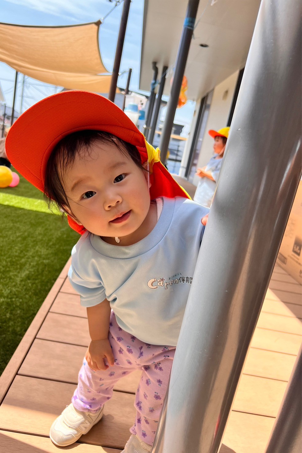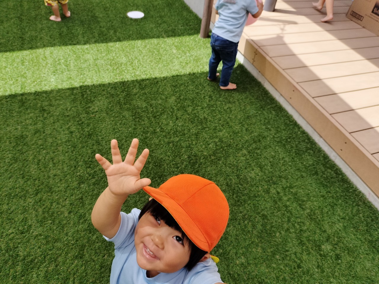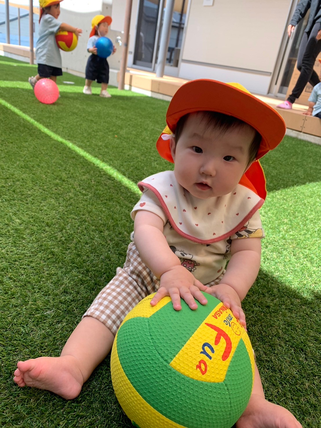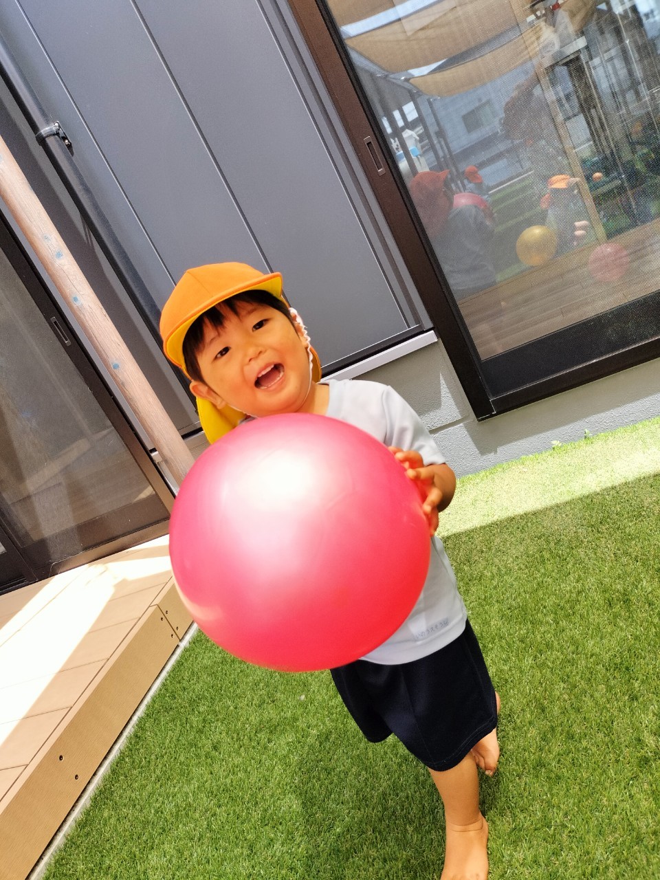 今日は園庭でボール遊びをしました😊大きさや感触の違うボールに触れて、ギュッと抱きしめてみたり、転がしてみたりして遊びましたよ❣️名前を呼んでボールを転がして渡すと嬉しそうな笑顔を見せてくれました✨