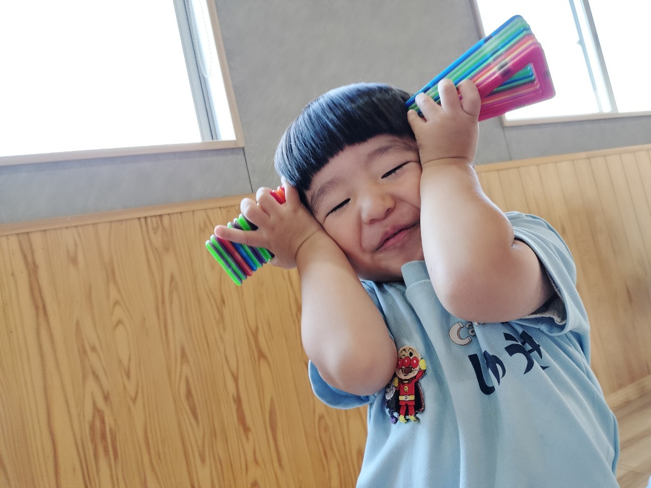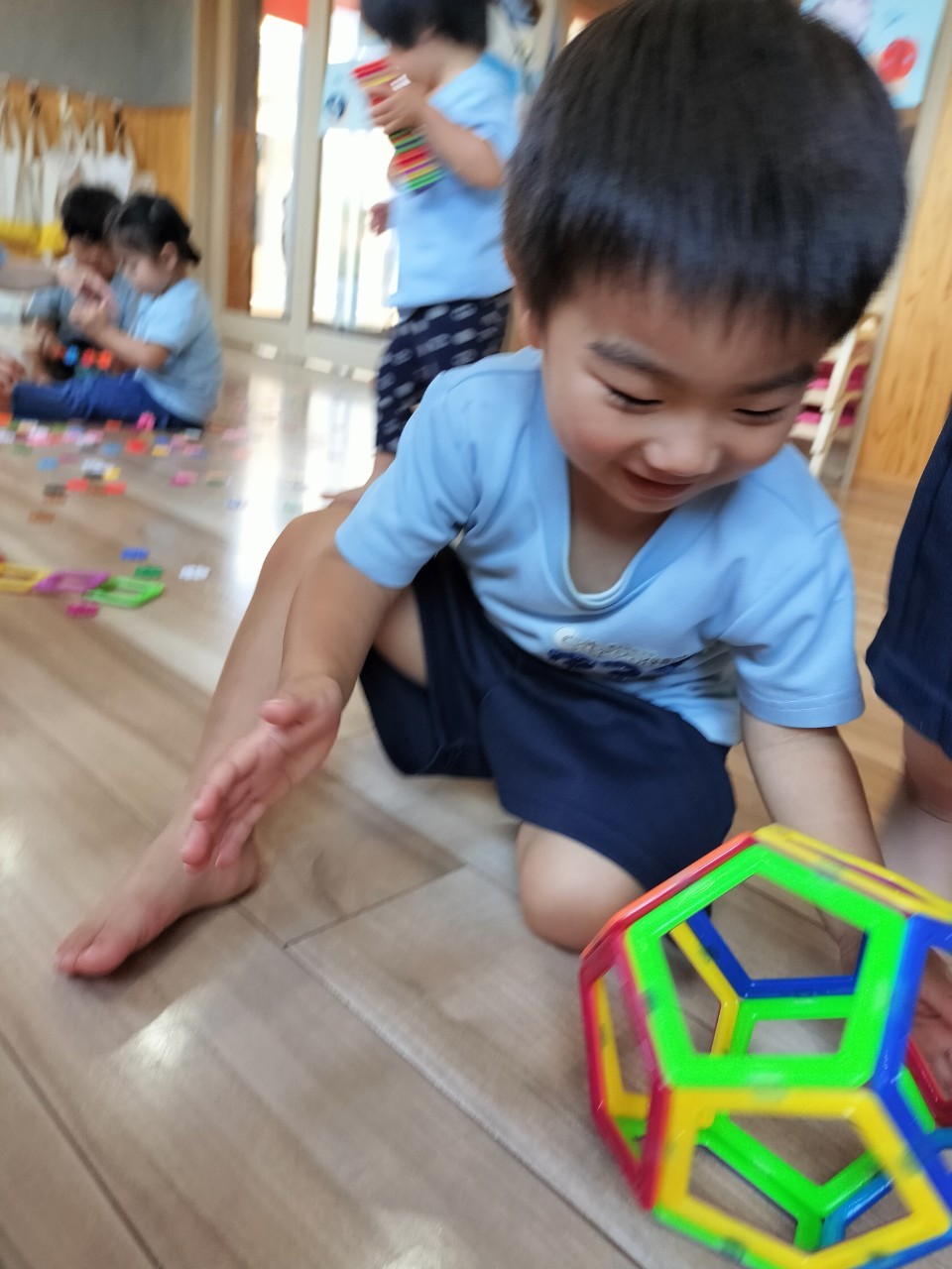 今日は最初にお部屋でジスターや磁石ブロックで遊びました😊 ジスターをはめてバイクやタワーを作ったり、磁石ブロックを組み立ててボール⚽️や三角帽子や鬼さんの👹角を作ったりしていたぱんだ🐼ぐみさんでした☺️