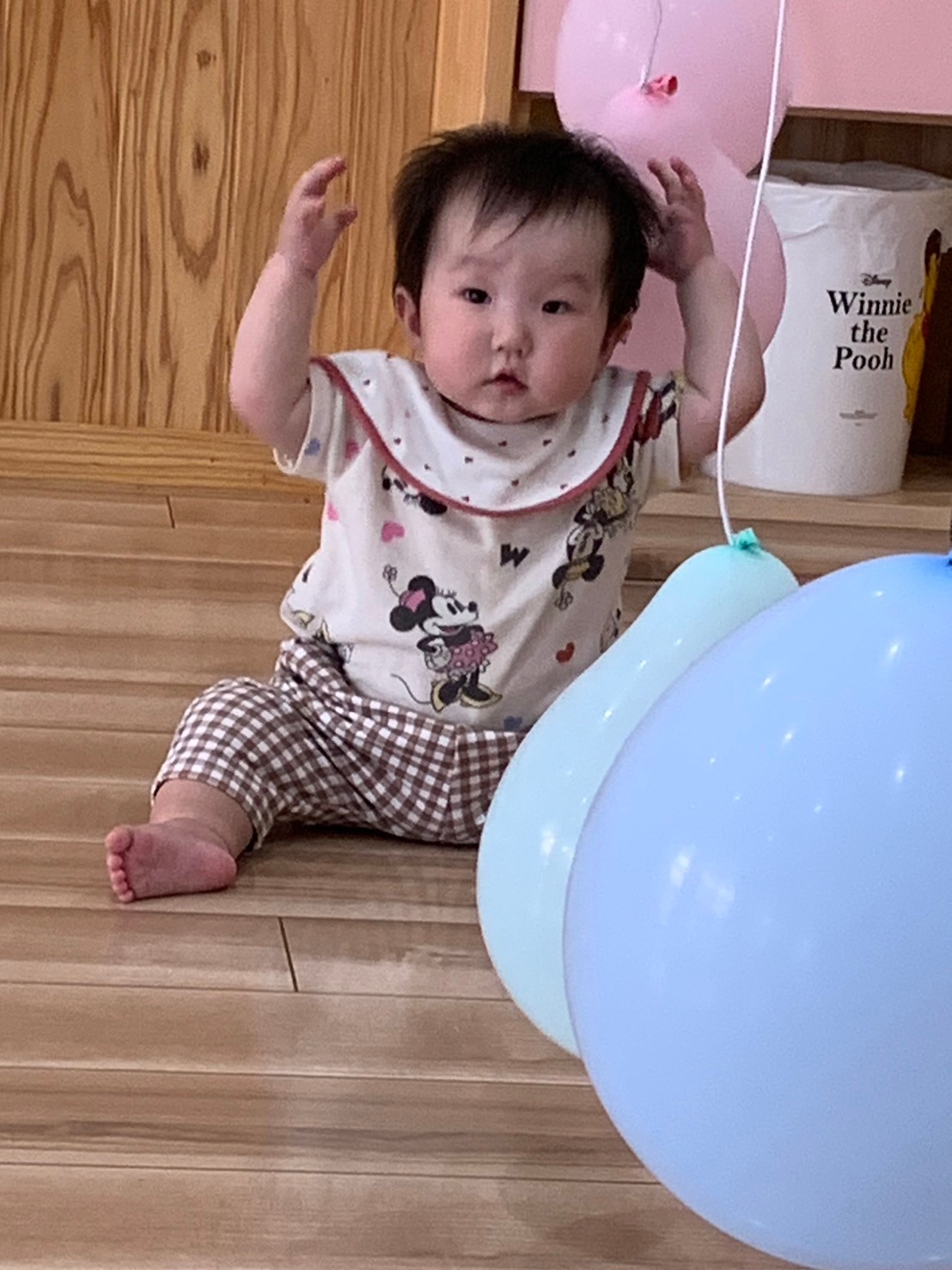 その後お部屋に入り、しっかり水分補給をした後、ゴム紐で吊るした風船🎈で遊びました😄
