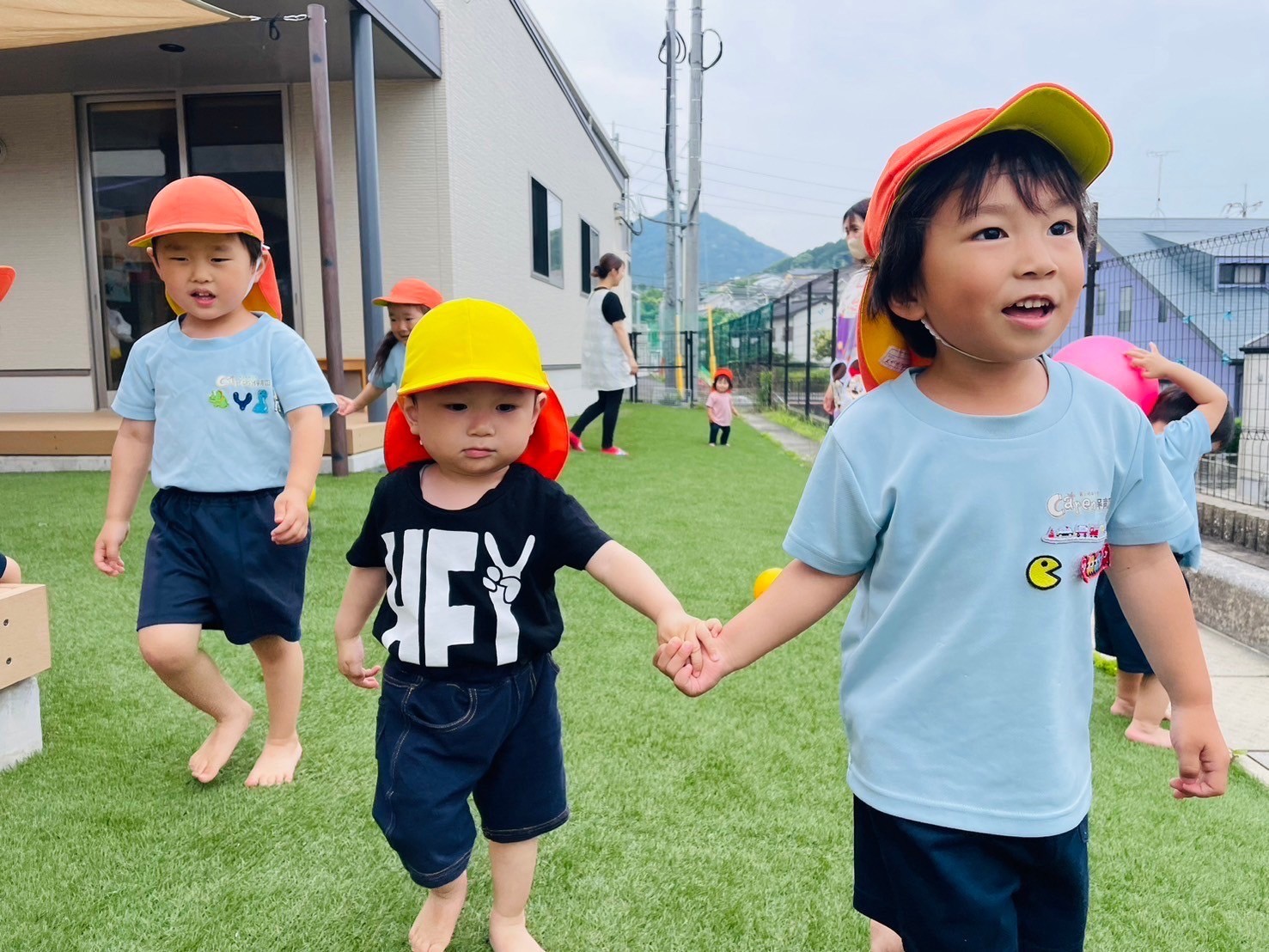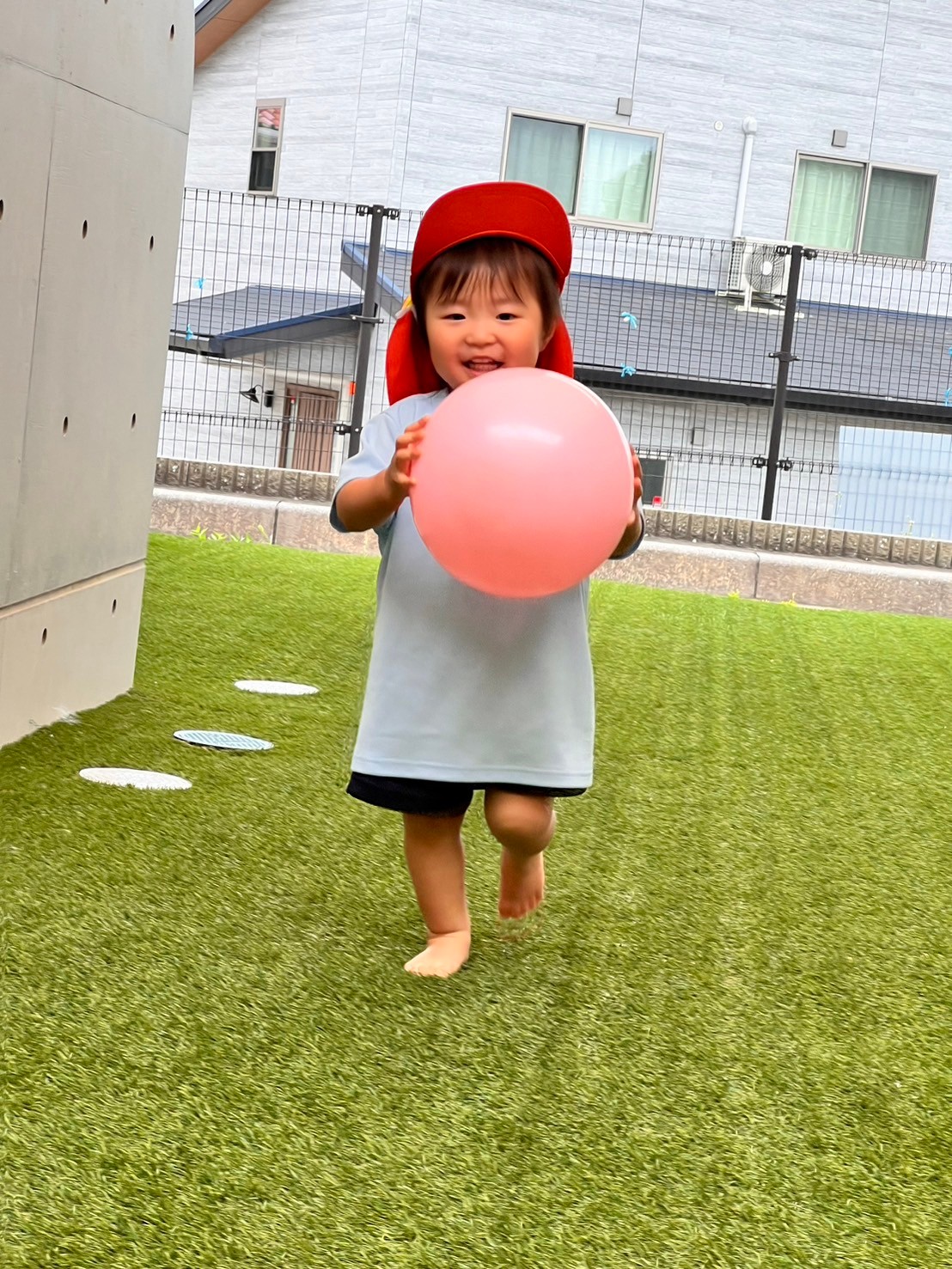 おままごとの野菜を切ったり、先生の抱っこで風船の上を跳ねてみたり、帽子を選んでかぶったり✨決めのポーズも可愛くできていましたよ❣️ 当日がとっても楽しみです♪ その後は園庭でボール遊びやパンダ組さんと一緒に追いかけっこをしたり手を繋いでお散歩したりと元気に遊びました💪ぱんだ組🐼