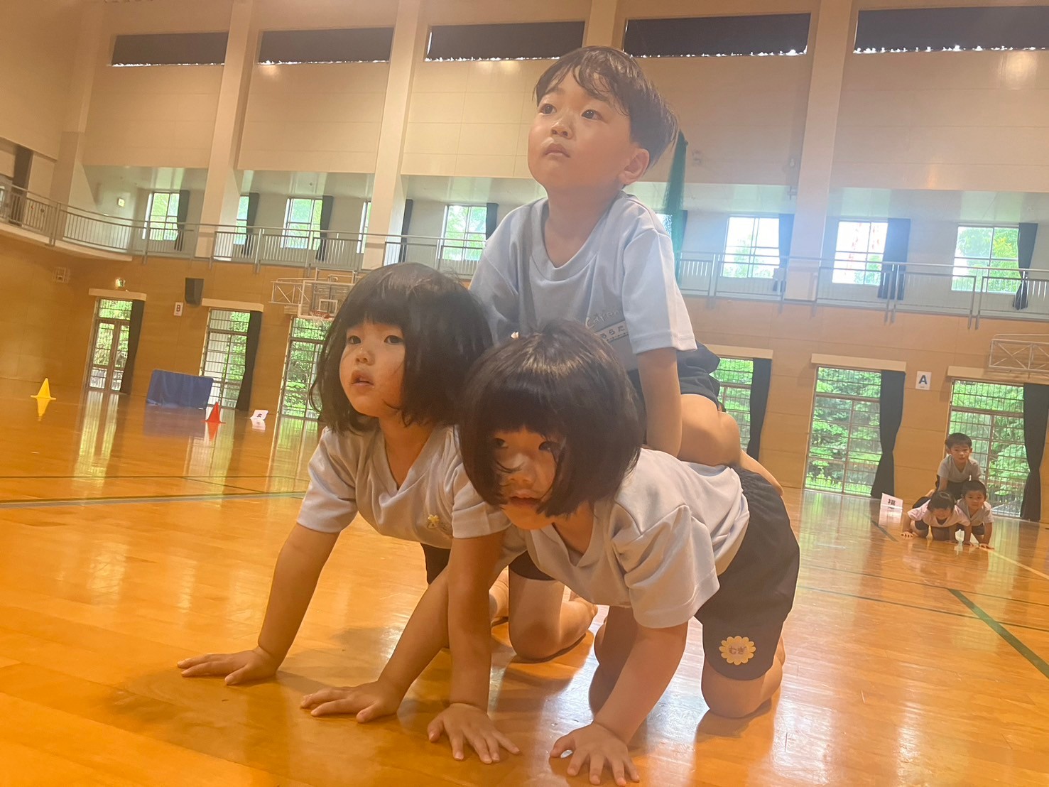 本番の場所(クロスパル古賀)で行い、いつもと違う雰囲気にドキドキしていましたが、自分の立ち位置の確認をし、いつも通りの笑顔で遊戯を楽しみましたよ✨✨