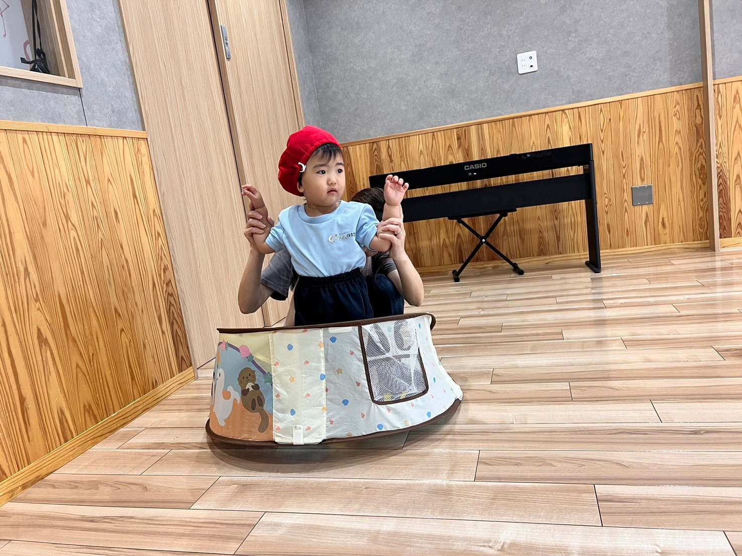 今日は運動会の親子競技の練習を先生と一緒にしました😊