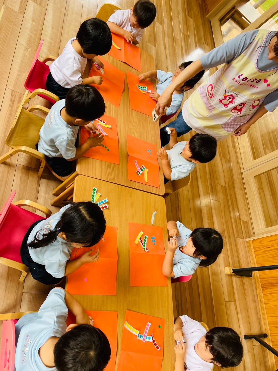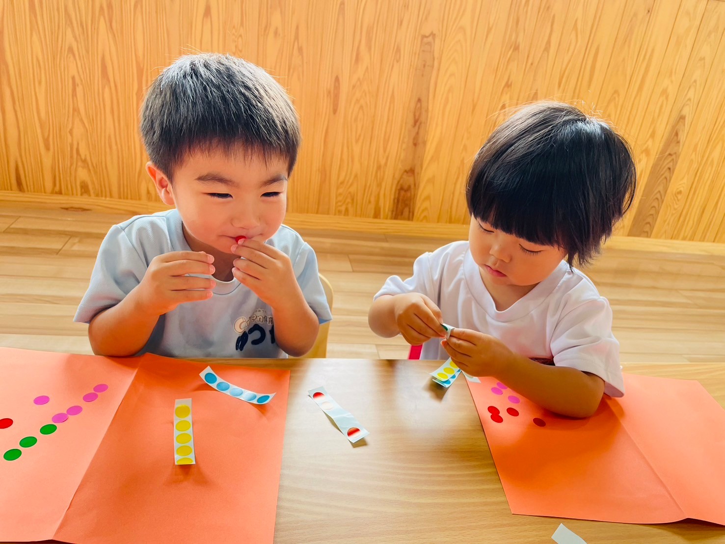 シールがなくなると「まだしたいー!」と先生に追加のシールをもらい、集中してシール貼りをしていましたよ🥰
