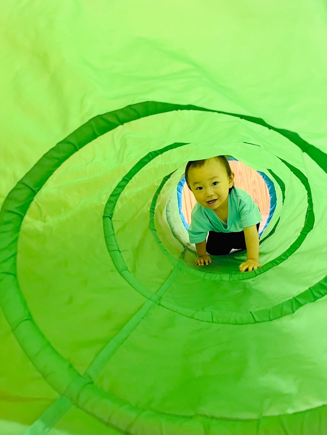 平均台では真剣な表情で歩いてみたり、トンネルではお友達同士顔を見合わせたりそれぞれ好きな遊びを楽しむ子どもたちです🥳
