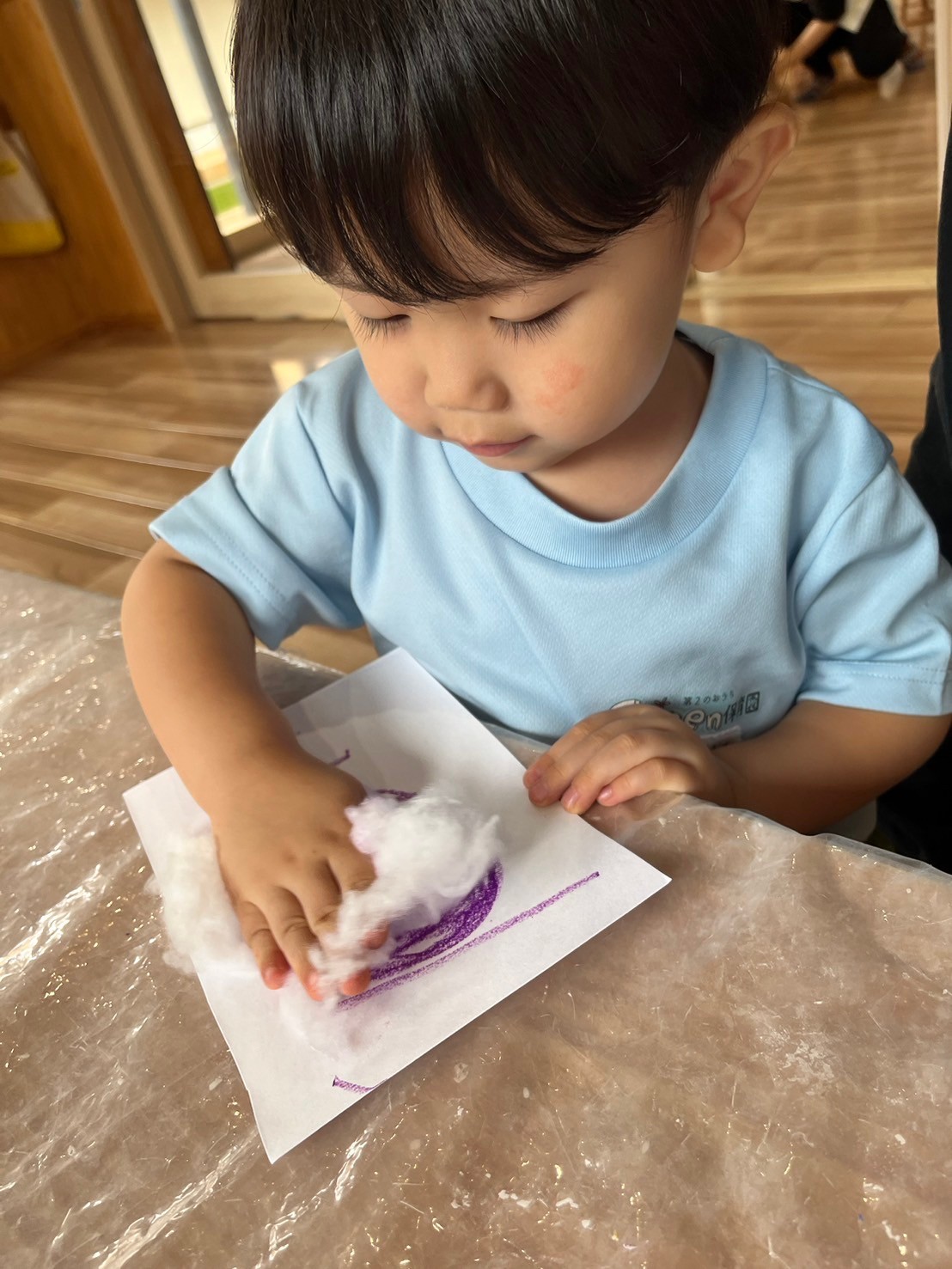 その後行事製作で綿菓子を作りました🤭画用紙に好きな色のクレパスでお絵描きして綿に擦り付けて色をつけました🎶時間もまだあったのだ、ソフトブロックや型はめパズルでも遊びました🫶🏻うさぎ、こあら、きりん組