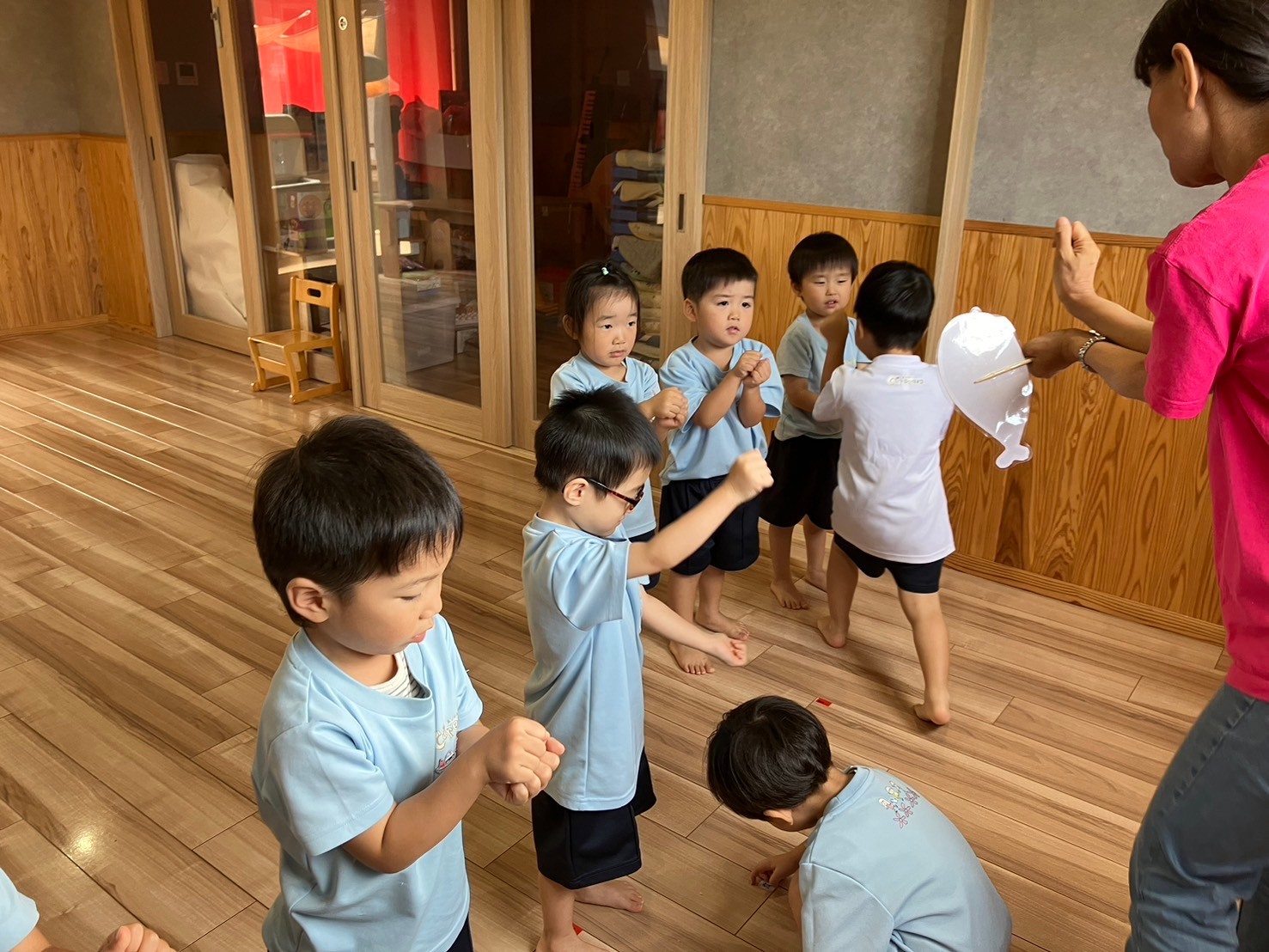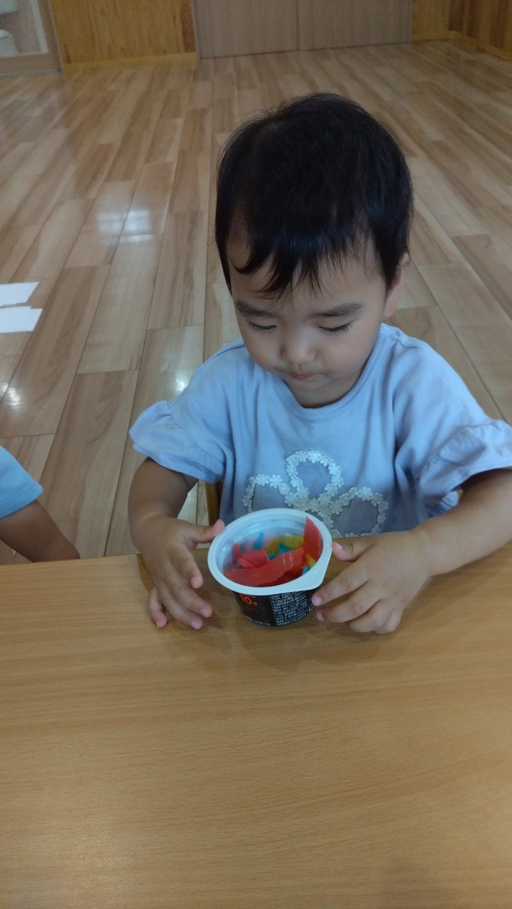 サメのペープサートがお気に入りで、手遊びをしながら唄って楽しんでいましたよ🦈🩷その後は夏祭りに向けて、フロート作りをしました✨
