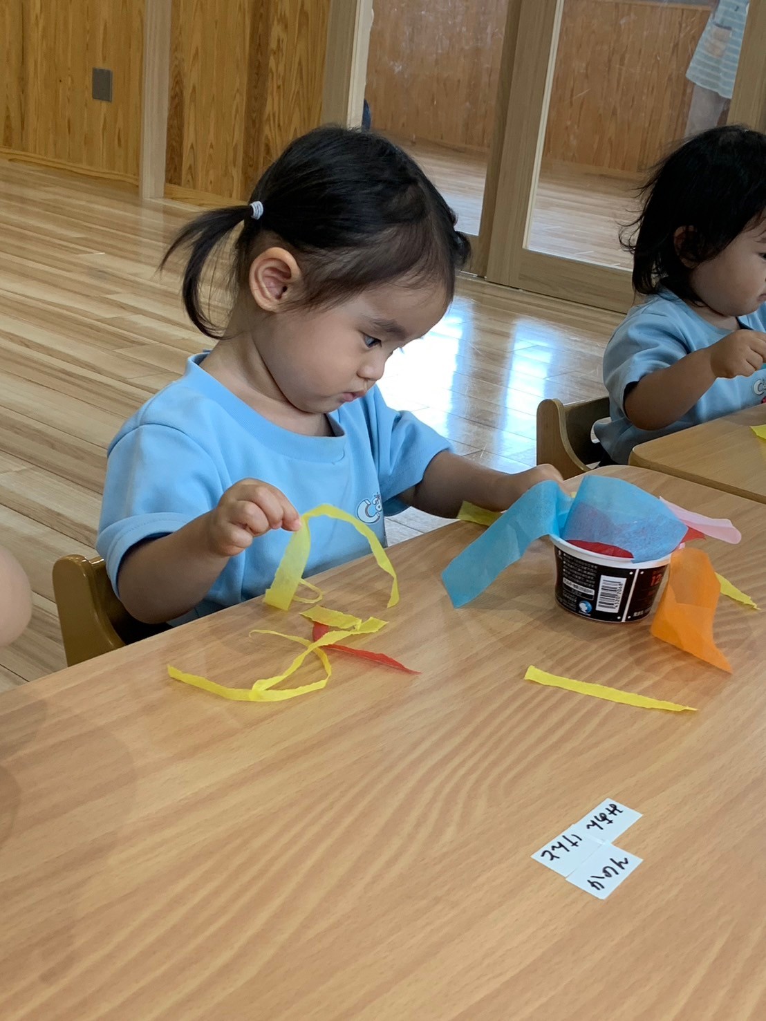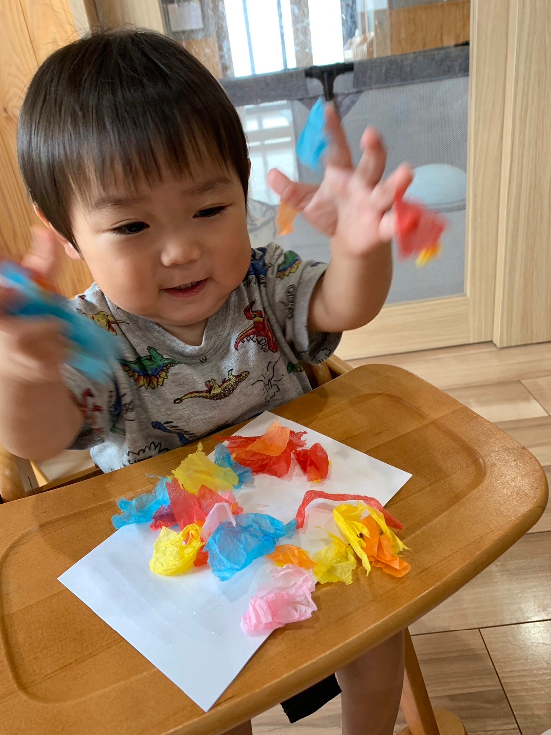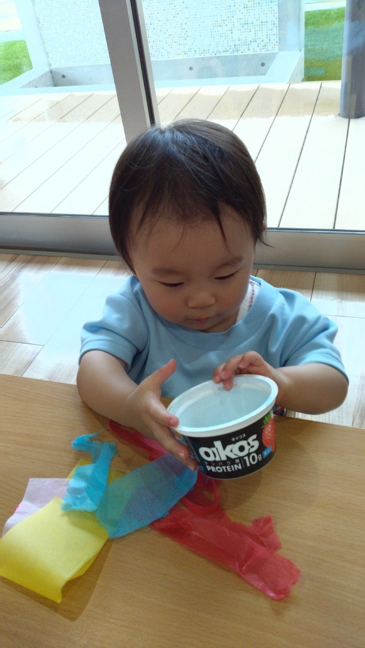 花紙をビリビリとちぎりカップに入れ、糊を塗った画用紙にペタペタと貼っていきました😃