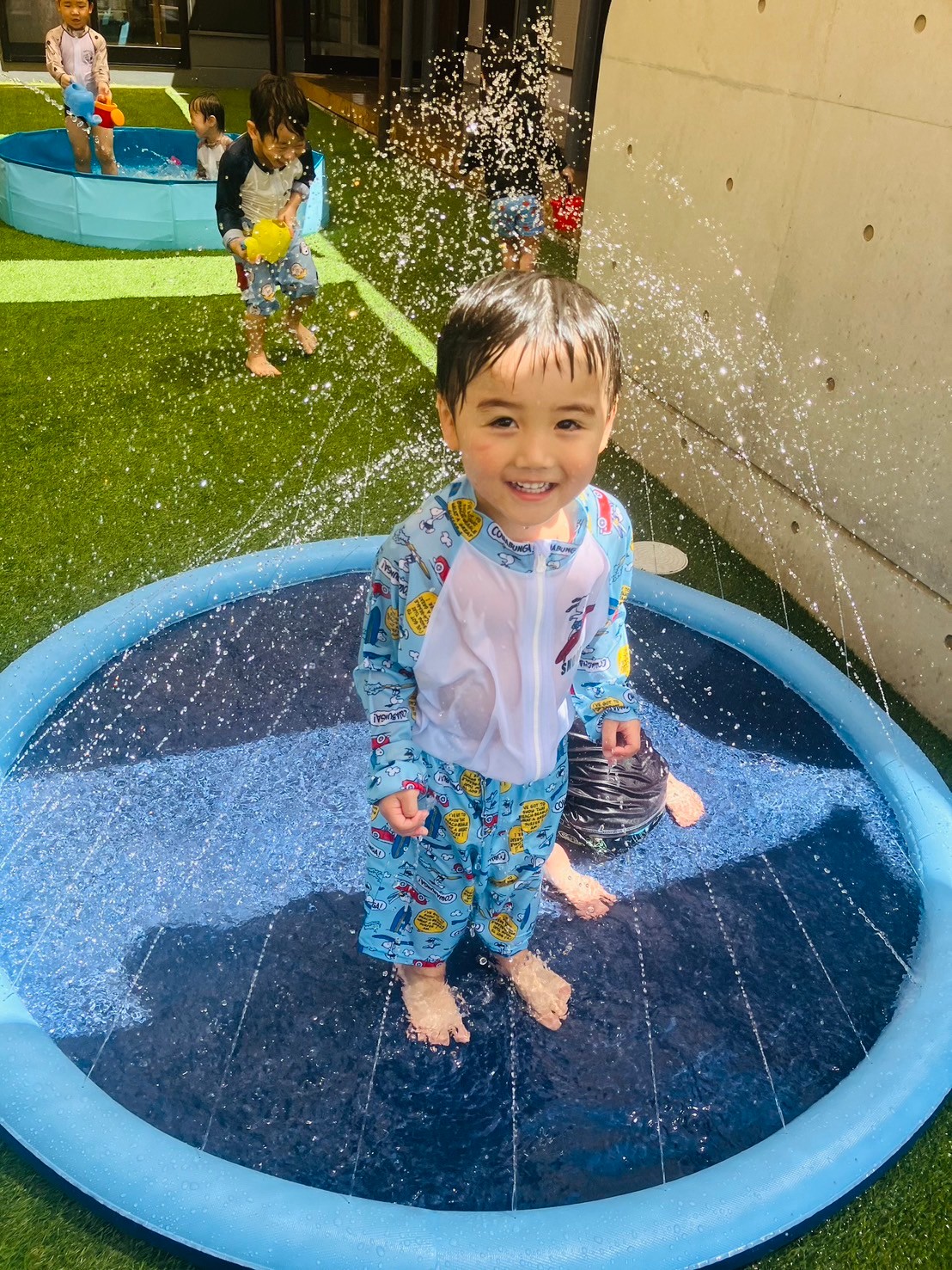 準備体操をしっかり行ってから、みんなで水を掛け合ったり、新しく頂いた噴水⛲️にも大喜びで遊んでいましたよ😆✨