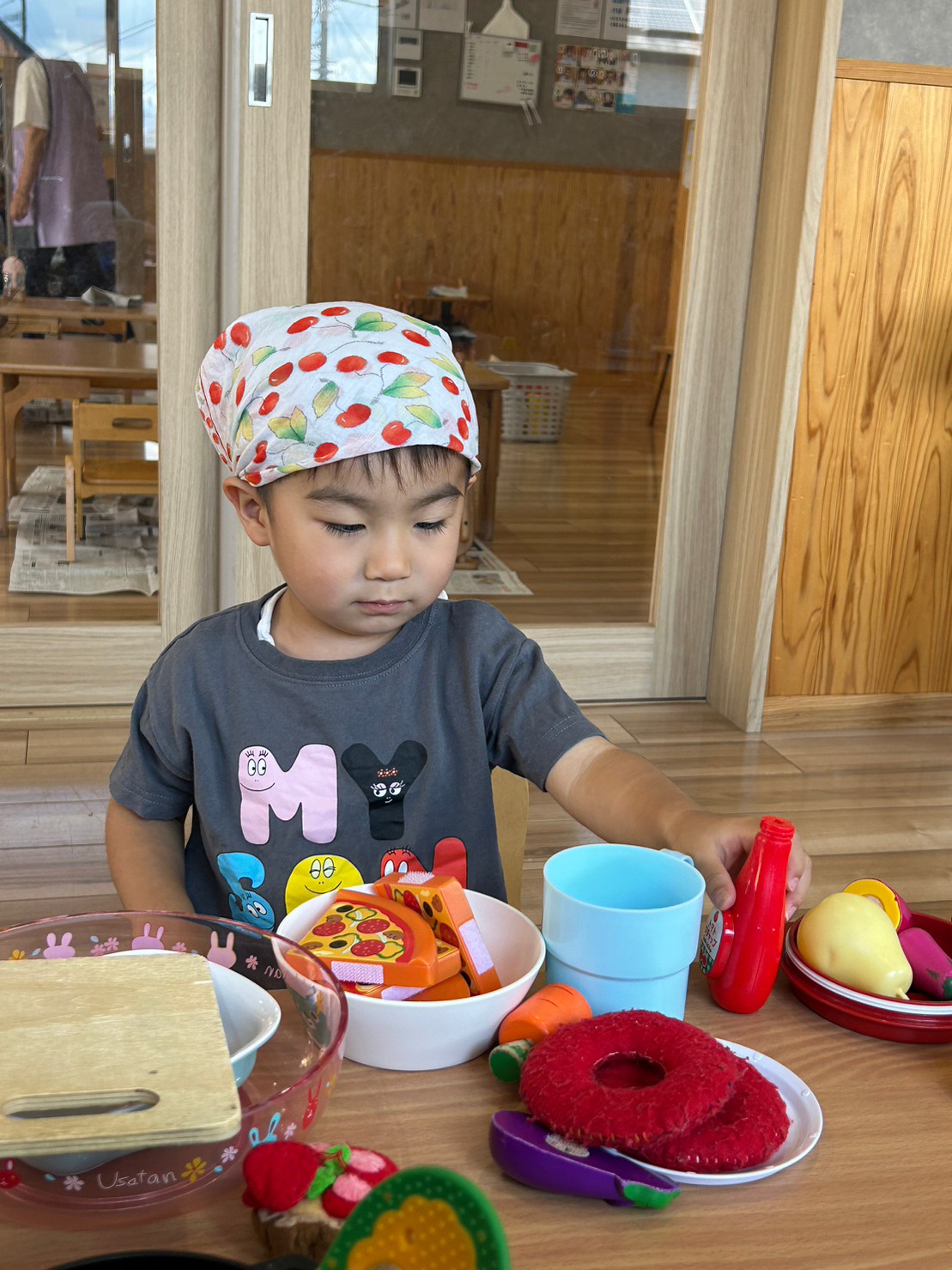 プールの後はままごとでお店屋さんごっこをしました🥗🍕🥤