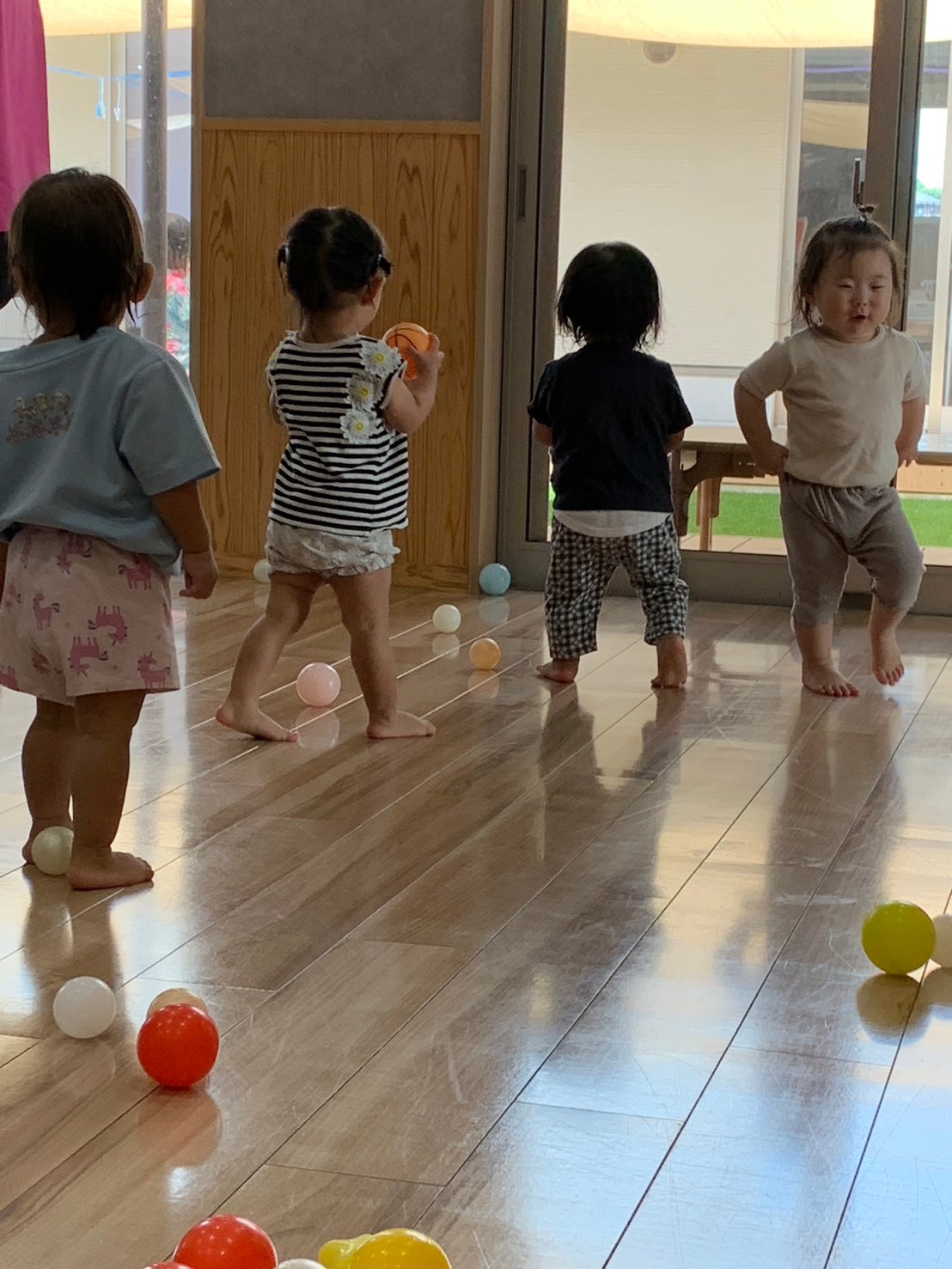 プール遊びの後はお部屋に入って、アンパンマンのボール遊びをしました😊投げたり転がしたり、ボールのシャワーも楽しみました✨ぱんだ組🐼