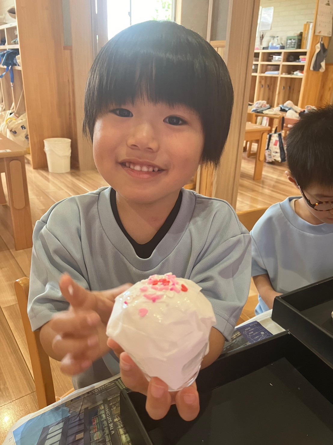 準備体操もしっかり行い、保育者にも水をたくさんかけ、「キャー❣️❣️」と大騒ぎしながら、大胆に水遊びを楽しみましたよ😆✨うさぎ、きりん組は夏祭りのフロート製作の仕上げを行いました🍨