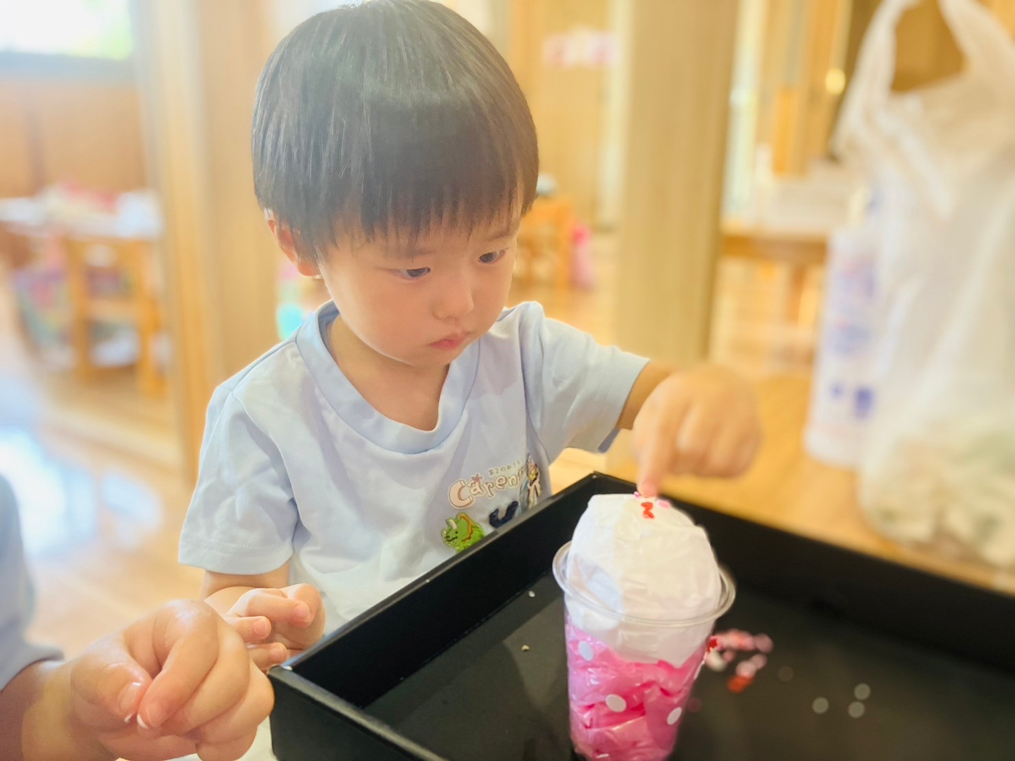 下のジュースの色も自分で選び、アイスにトッピング☺️