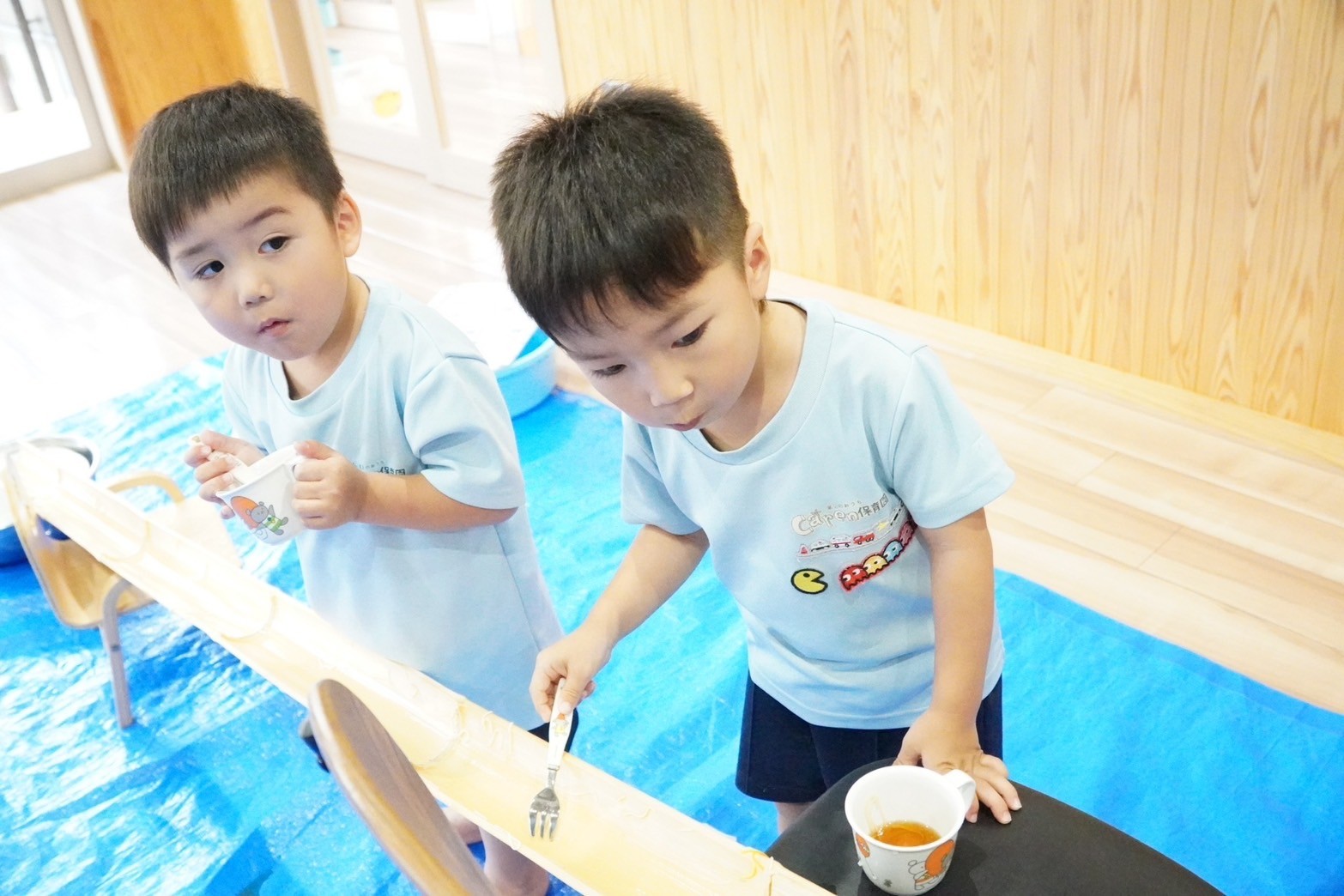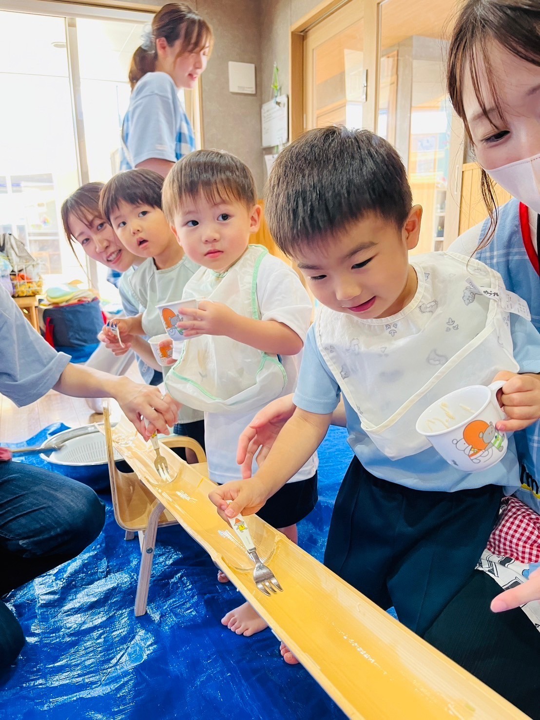 流れるスピードにフォークが追いつかない子やタイミングを合わせて器用に掬う子などさまざまでした☺️✨