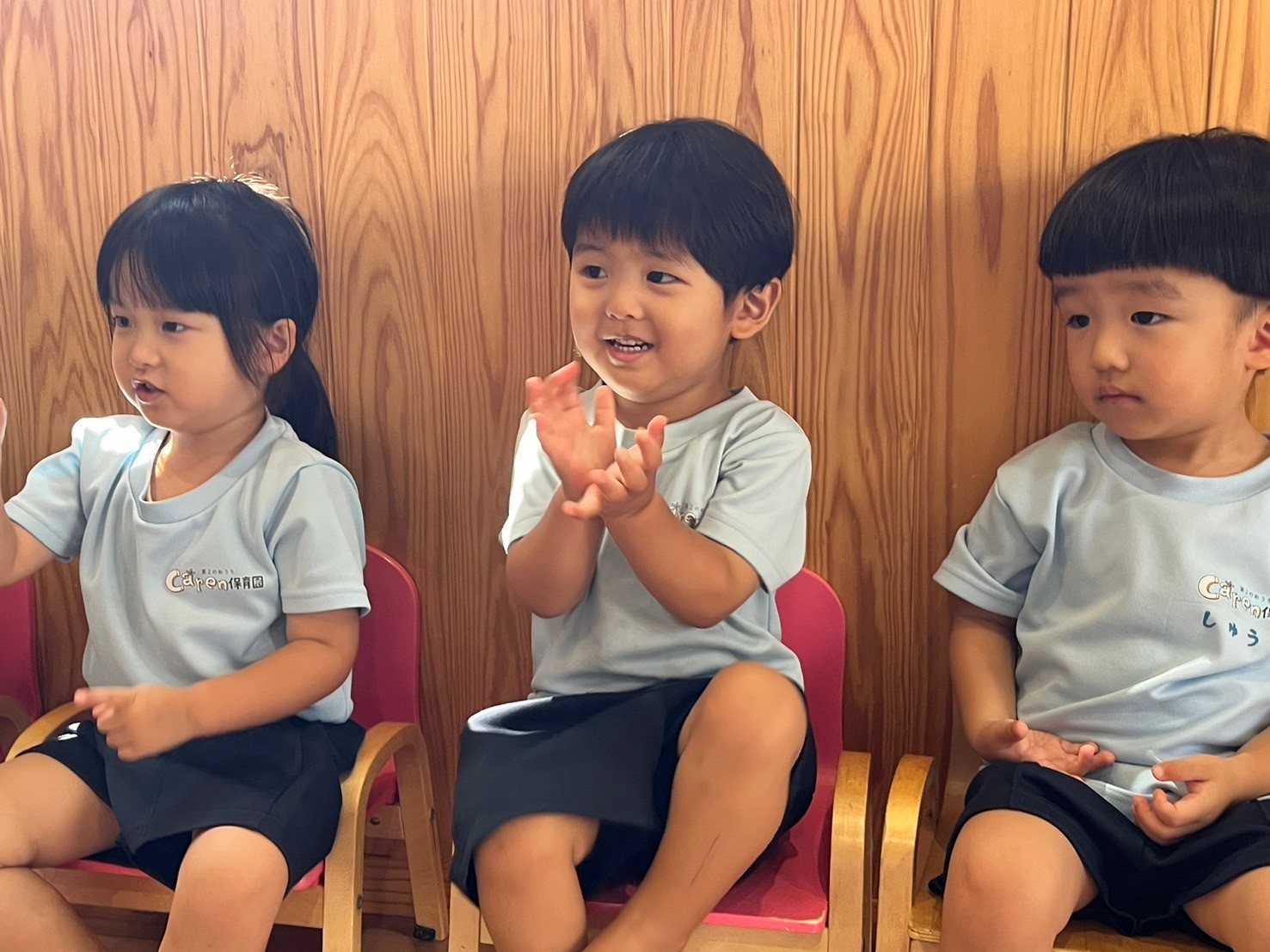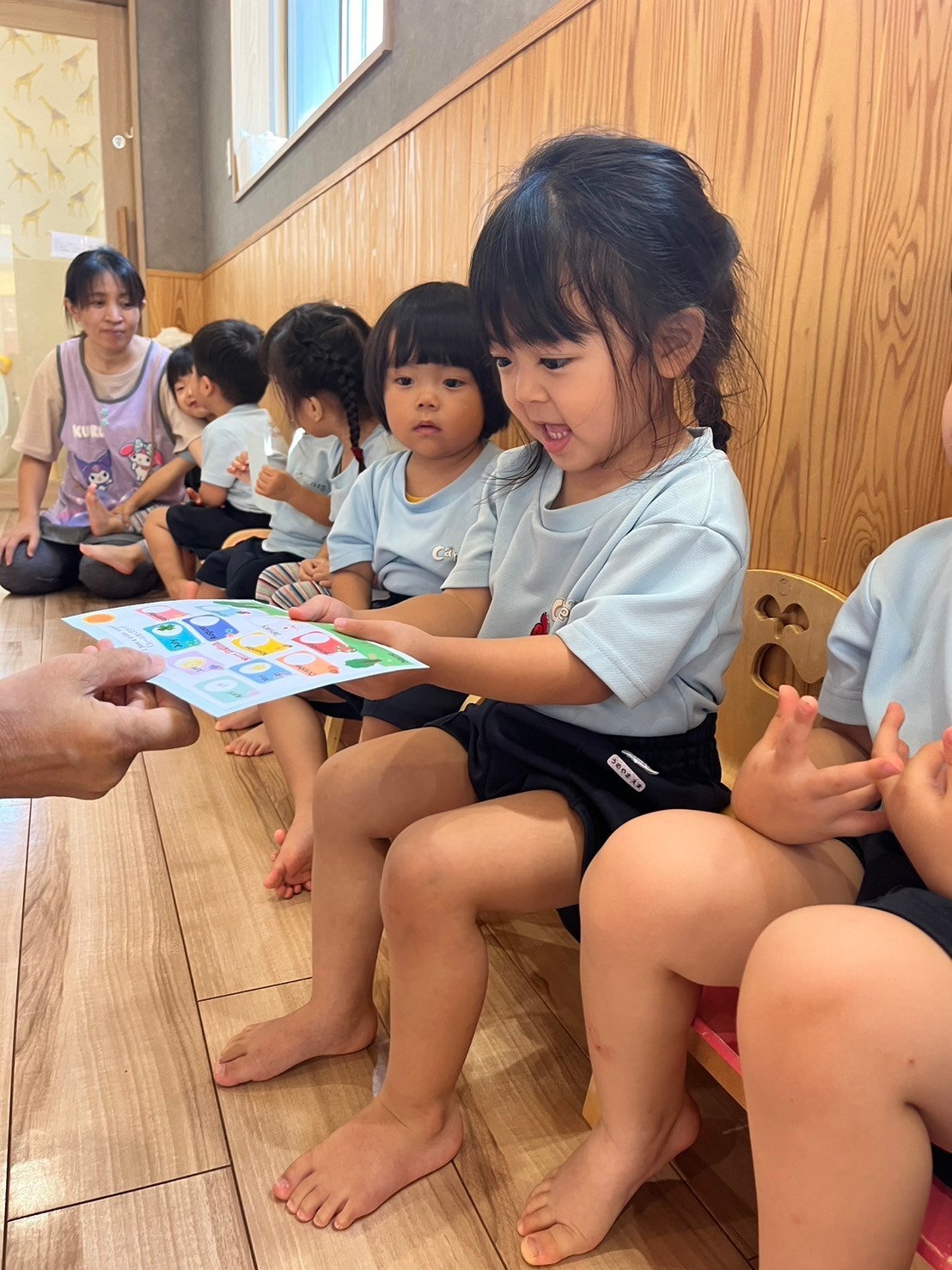 その後英語教室に参加し前回したベイビーシャークを楽しく踊りました🦈🎶先生に「ステッカープリーズ」や「センキュー」のやりとりも少し見られました☺️うさぎ、こあら、きりん組