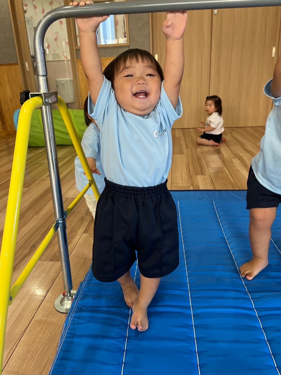 今日は室内でさくらんぼリズムやサーキット遊びをして楽しみました😆✨️久しぶりのさくらんぼリズムでしたが、音を聞くと体が覚えているのかアヒルやおうま、トンボになって体を動かしていました!分からないお友達も周りを見て体を動かすことが出来ていましたよ🥰🎶