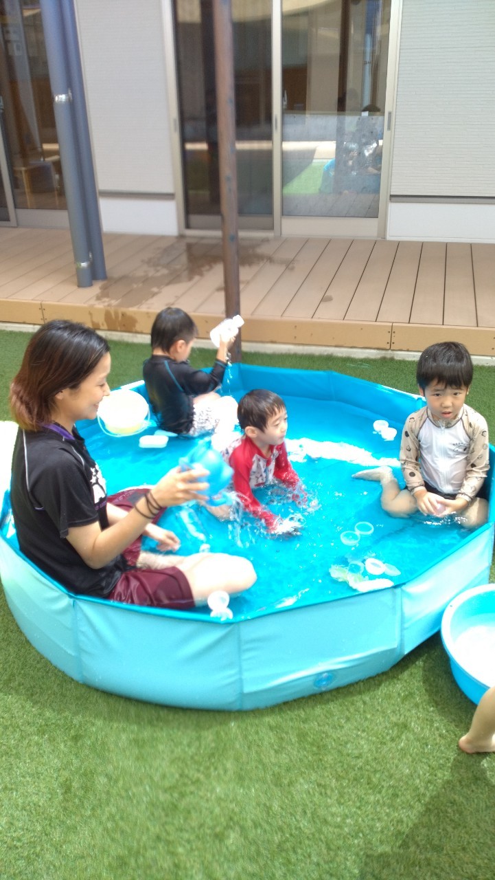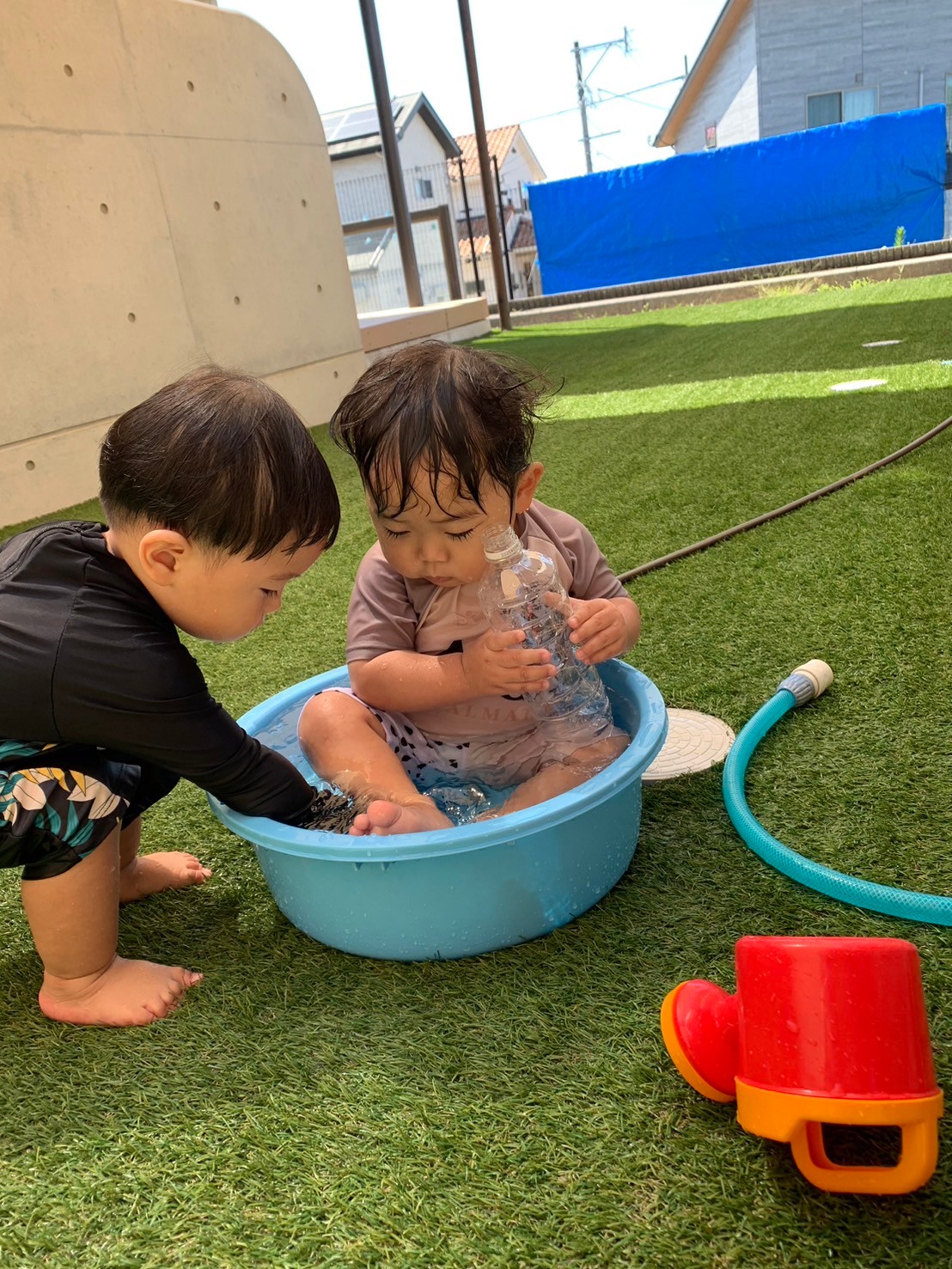 顔や頭にお水がかかっても、怖がる事なく、はしゃぐ姿が見られました😆