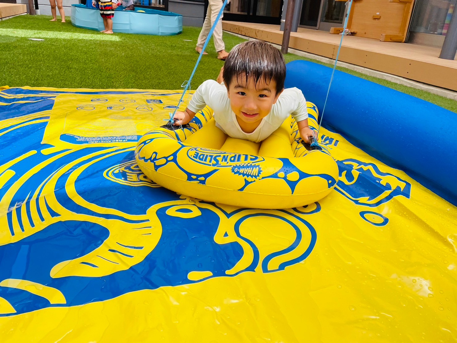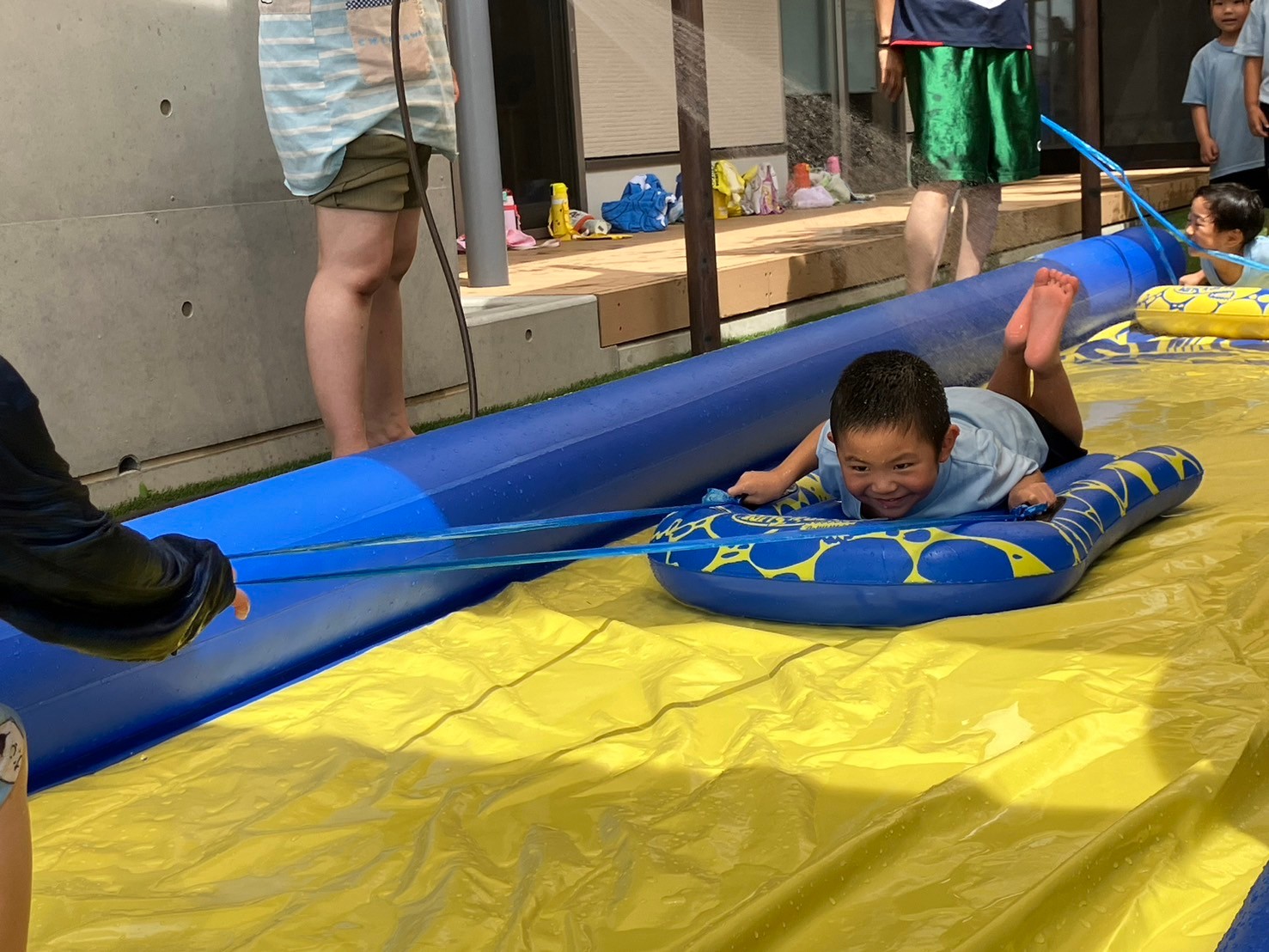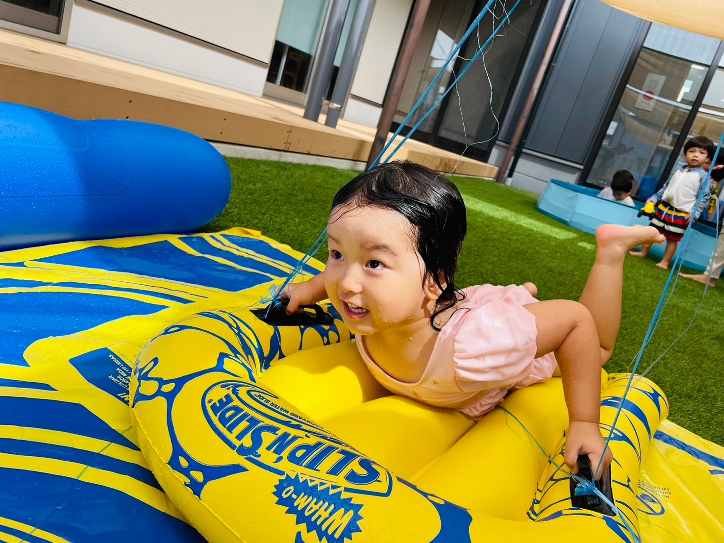 水遊びでは、今年初のスライダーに大喜びで、シュー!!っと滑っては「次は僕が引っ張る‼️」と、引っ張ることも楽しんでいた子ども達でした🥰【くりえいと園の今日の給食です】
