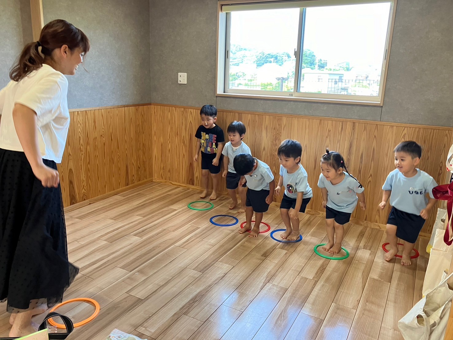 音符カードを使って音階を復唱したり、フープを使って四分音符を身体で感じる遊びをしましたよ✨