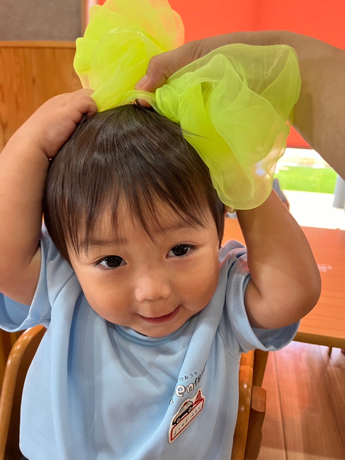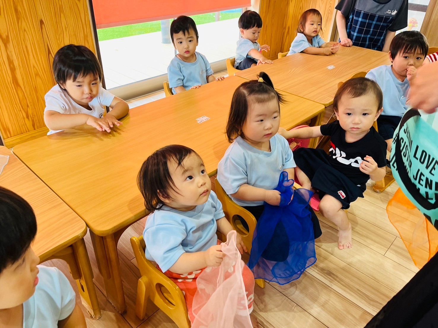 今日はリトミックがありました🎶シフォンスカーフを使って音楽に合わせて遊んだり、絵本の読み聞かせを楽しみました✨