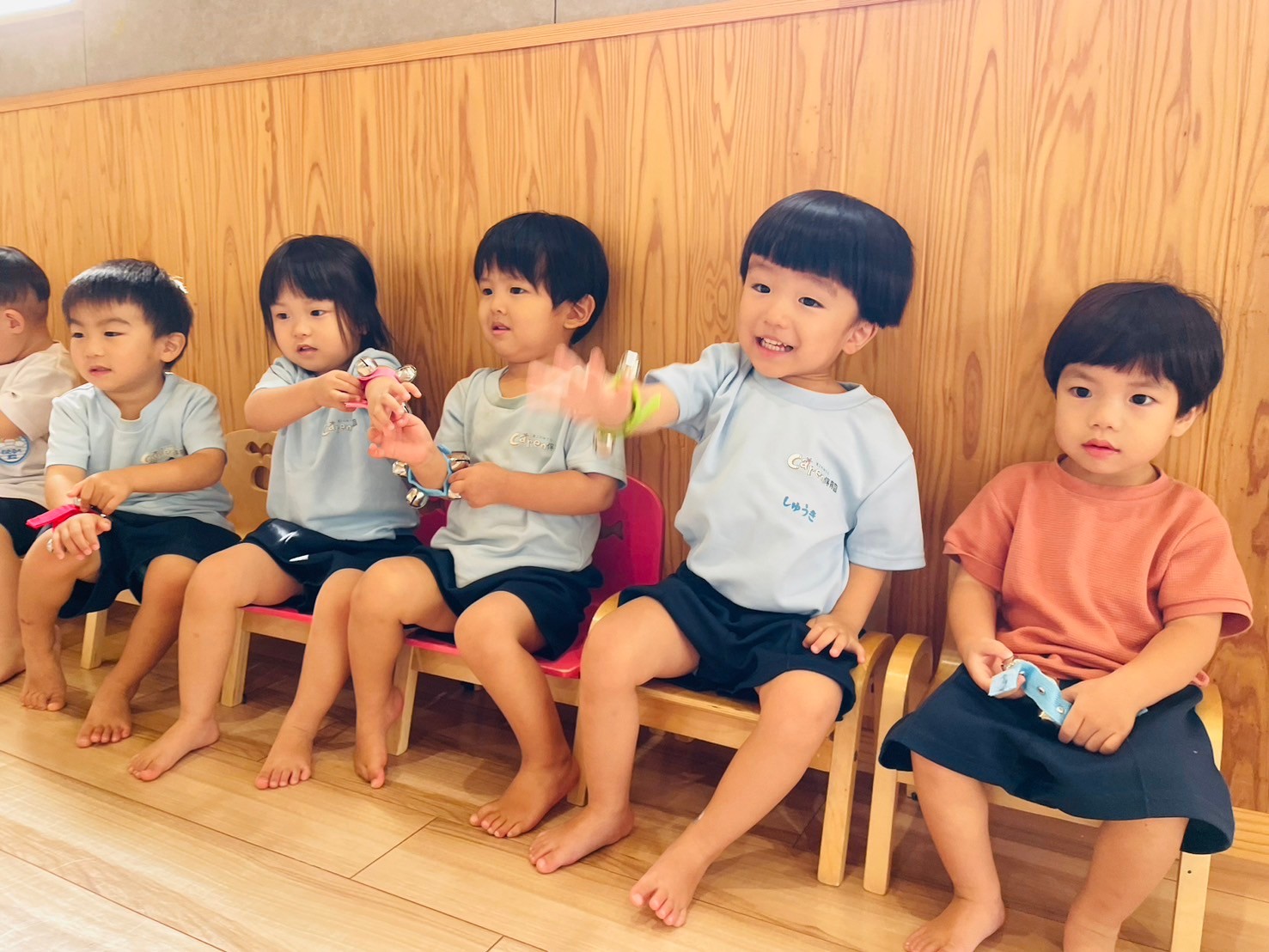 カードを使ってドレミファソラシドの音階を学んだり、好きな色の鈴を選んでおもちゃのチャチャチャをみんなで演奏して楽しみました😊💕