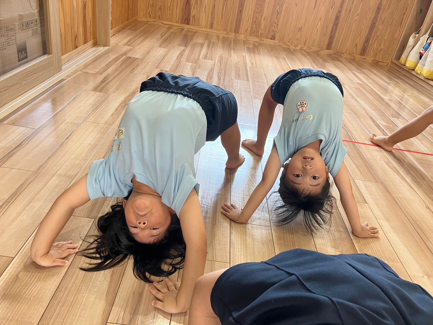 うさぎ組は、うさぎ跳び、ワニ歩き、前転を行い、前転後にすぐ立ち上がる練習に力を入れて行いましたよ✨