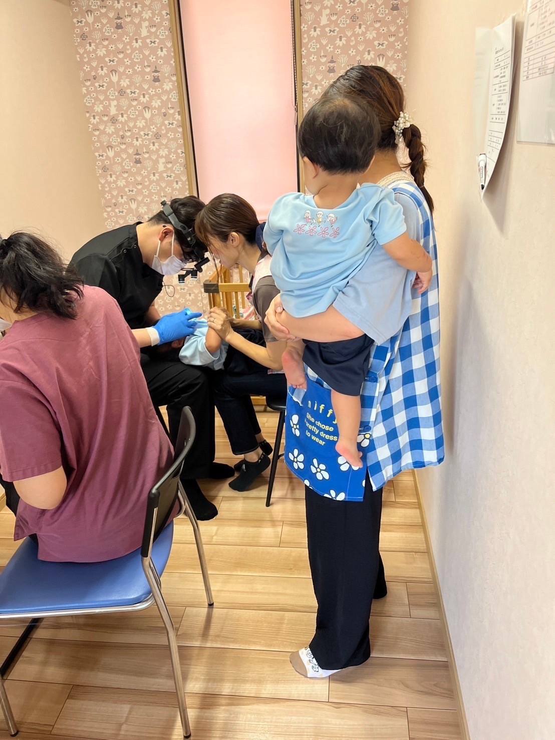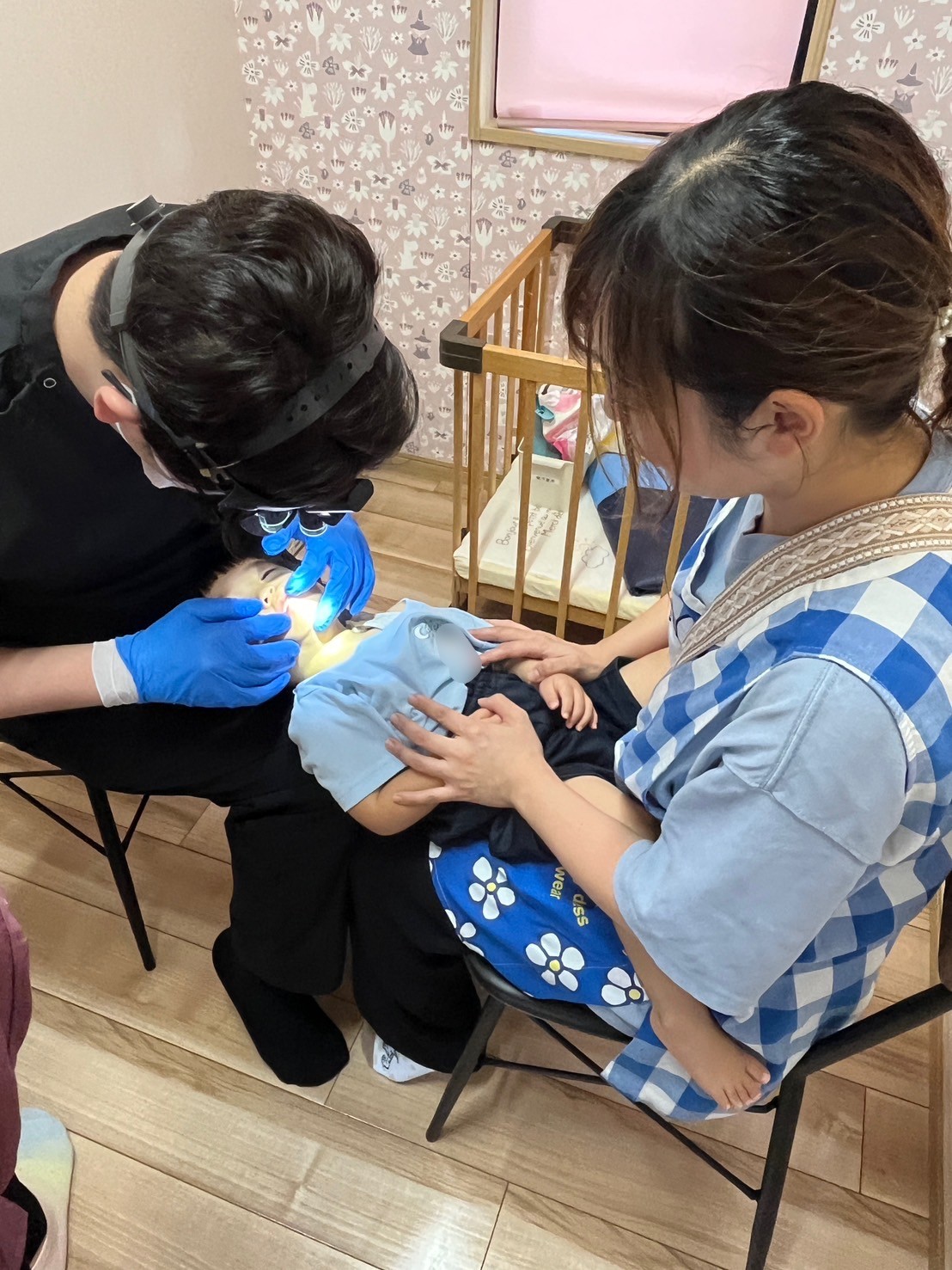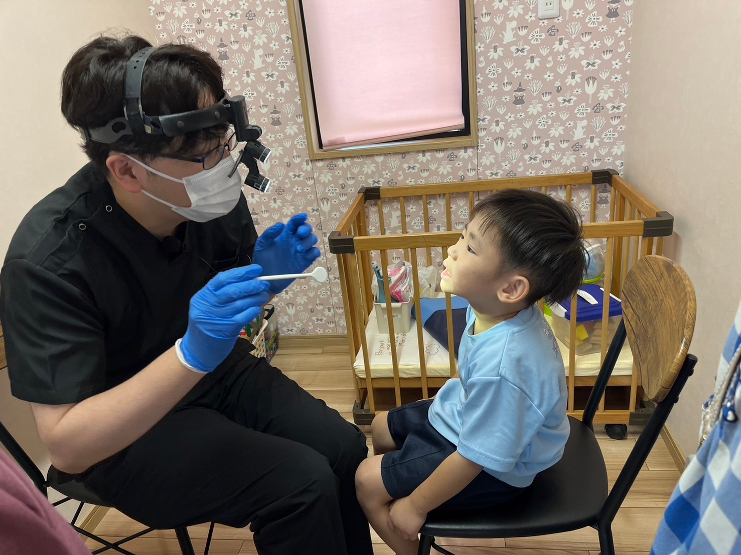 お医者さんの姿にドキドキして涙もポロポロでるお友達もいましたが、先生に抱っこされお口を大きく開けて診てもらうことが出来ました🥳