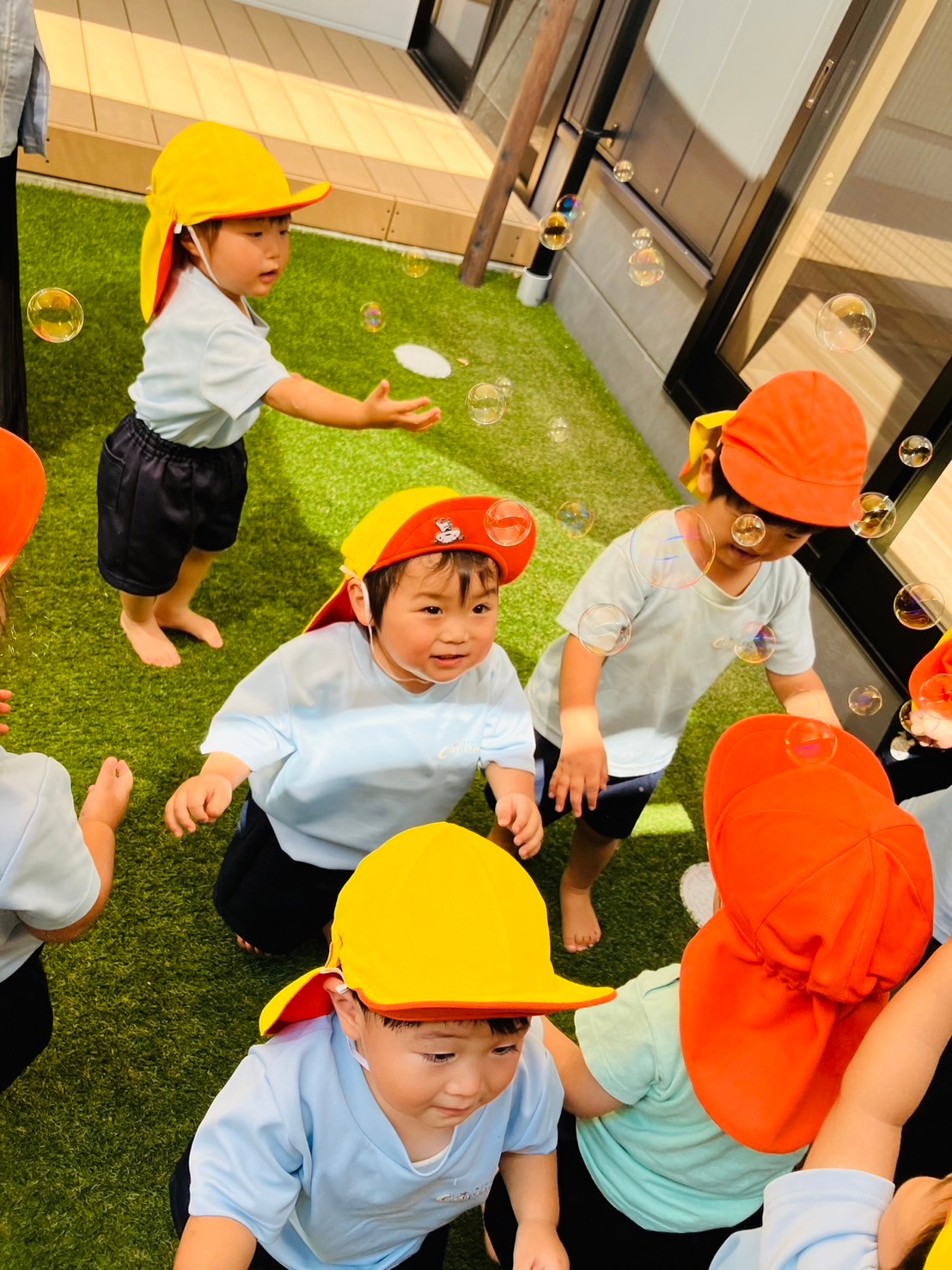 園庭遊びもして他のクラスのお友達と混ざってシャボン玉🫧をしたり滑り台🛝をしたり刺激をもらったひよこさんでした🐣りす🐿