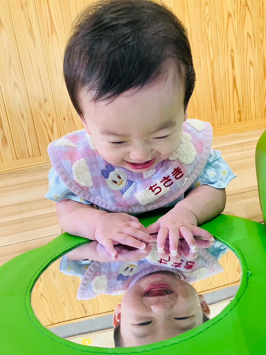 そして、亀さん🐢のプレイマットで遊びましたよ😊鏡に映る自分を見て嬉しそうに満面の笑顔☺️