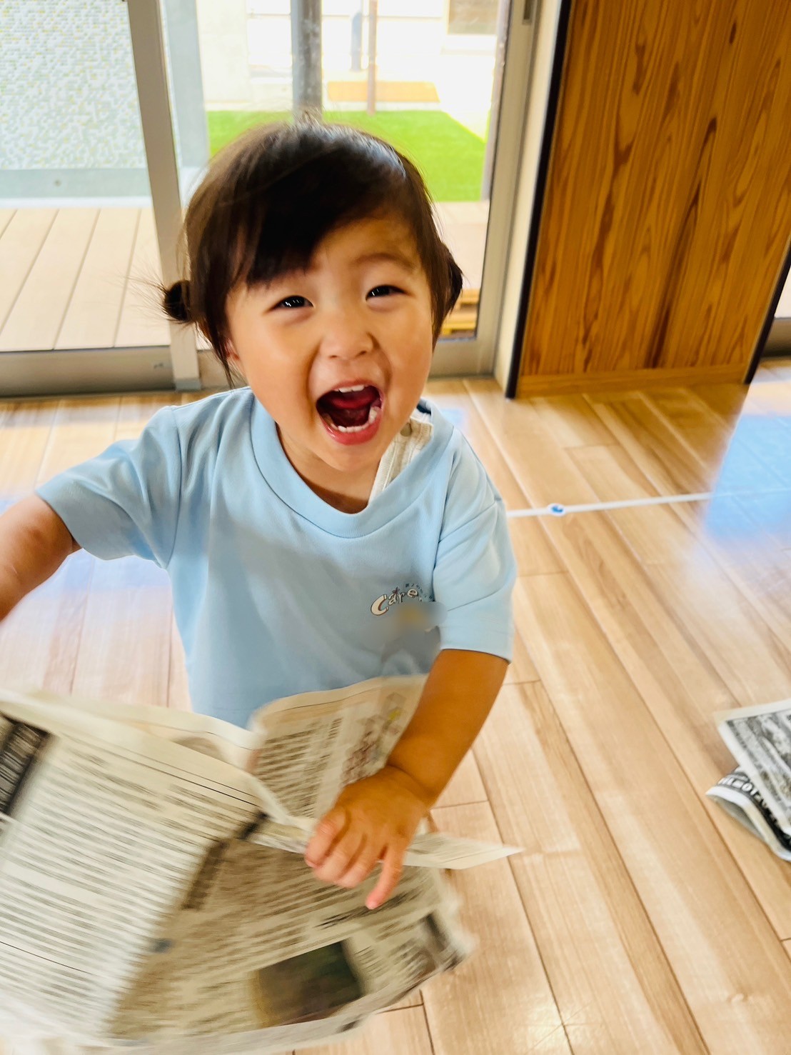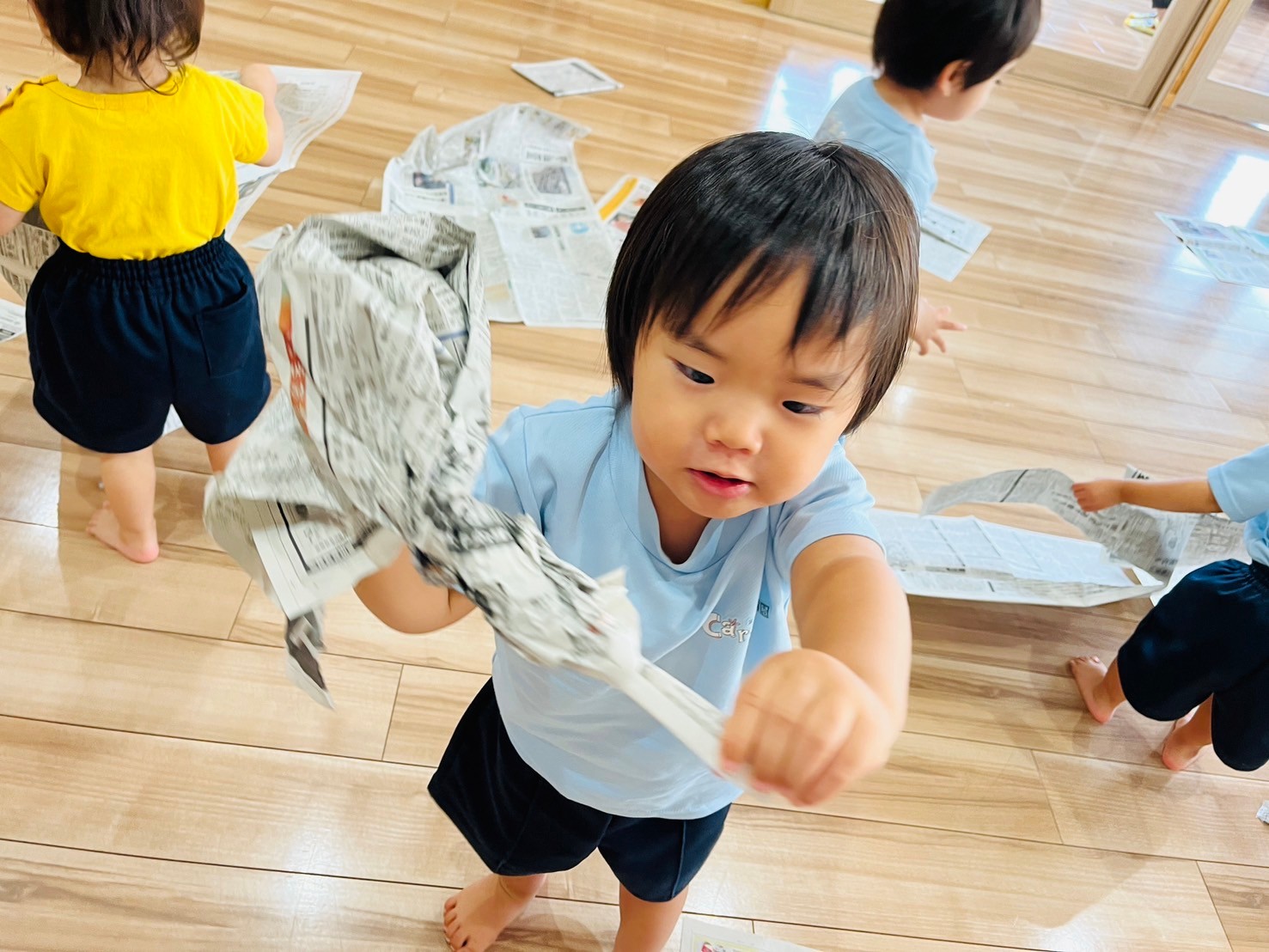今日は部屋で新聞紙遊びをして過ごしました💕