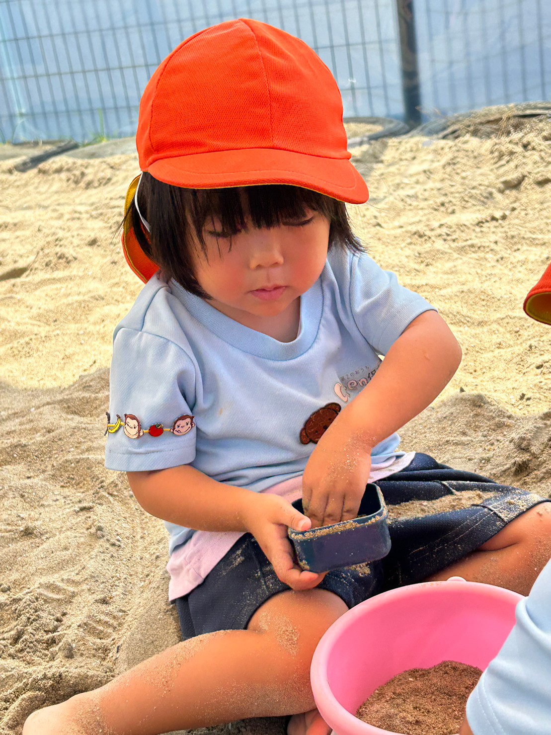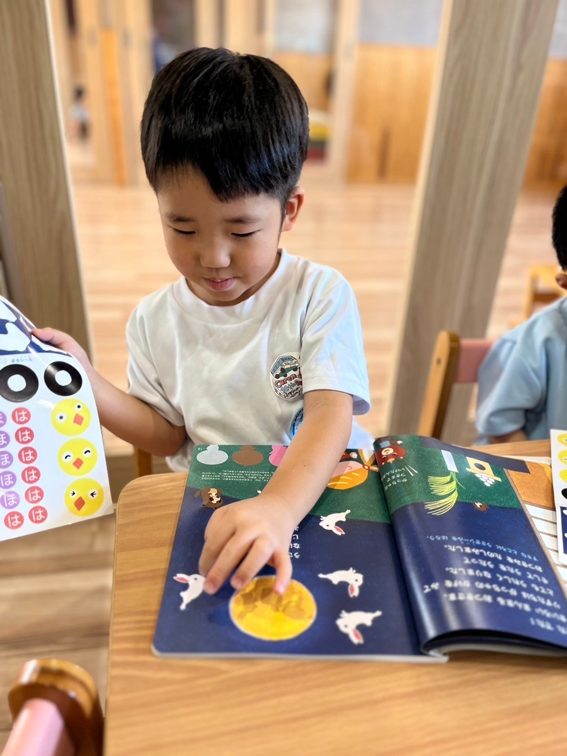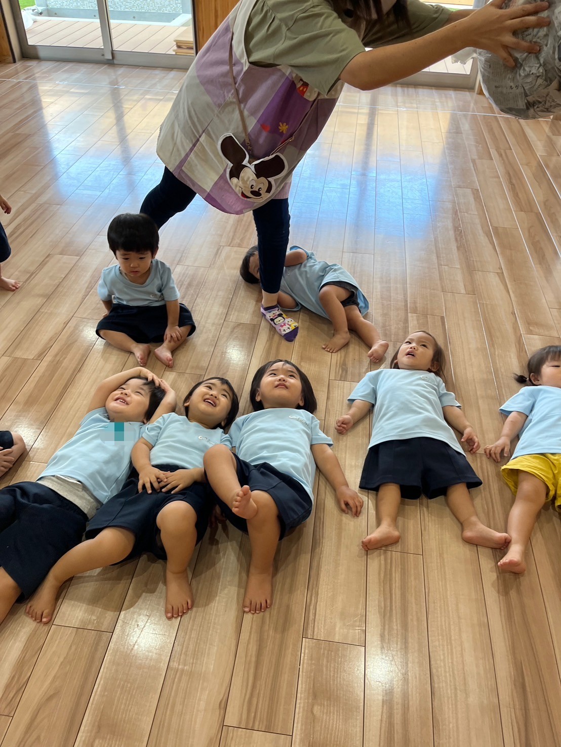 初めは恐る恐る行っていましたが、回数を重ねるたびに勢いが出てきて、講師の先生からも褒められて嬉しそうでしたよ🤭月製作や、ポピードリル、戸外で砂場遊びもして、たくさん遊んだ子ども達でした☺️❣️