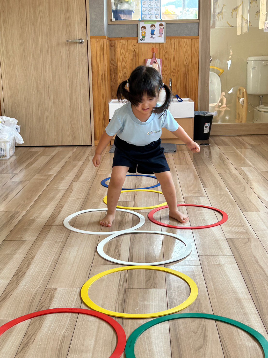 ⭕️の両足跳びが上手になったので、今日はケンケンパーに挑戦💪