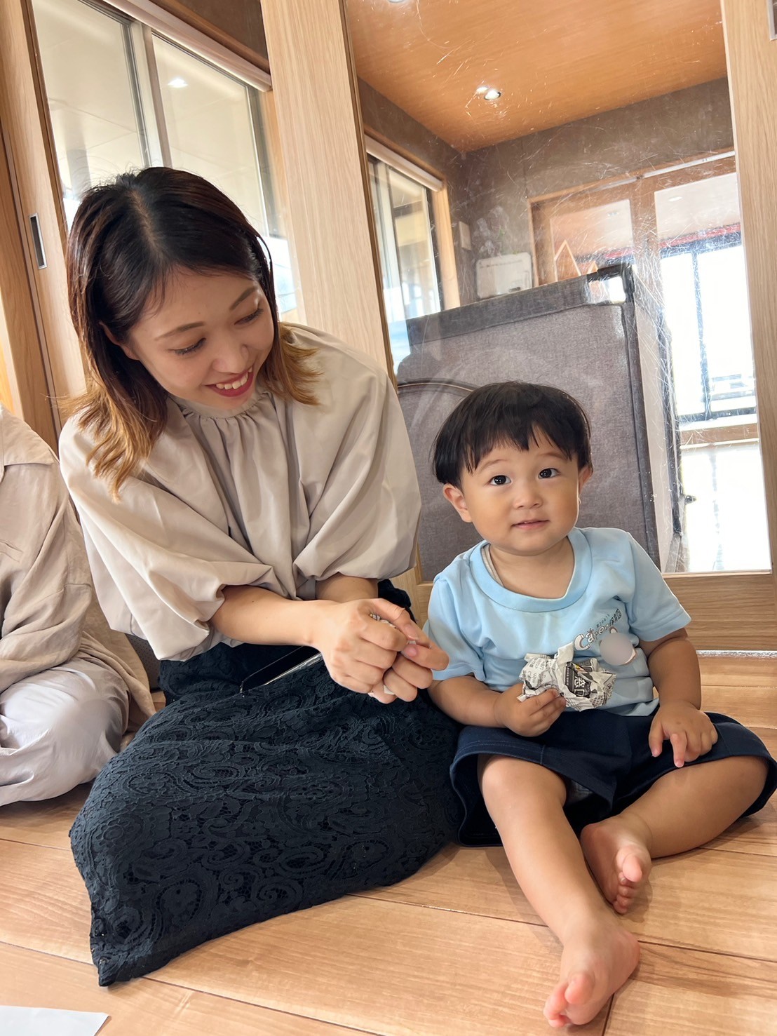 ついてから起きて、異年齢児とふれあい雰囲気で嬉しそうに😍