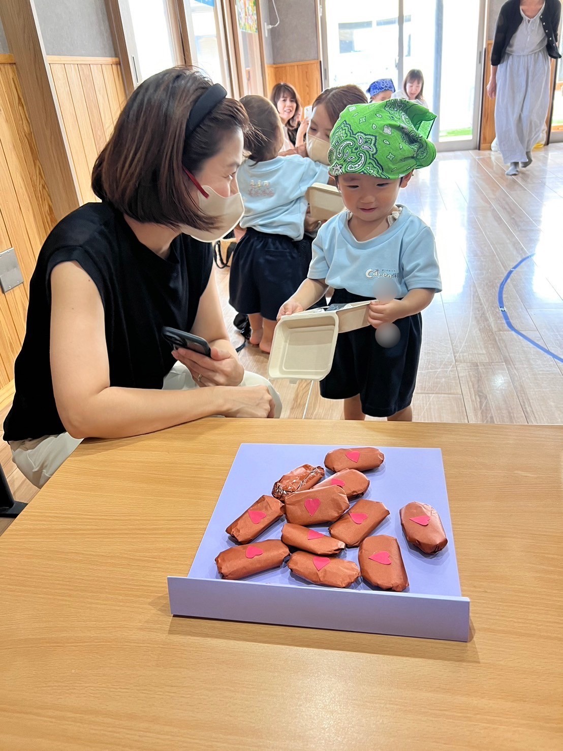 おうちの方と一緒に登園し、いつもとは違う雰囲気にドキドキなりす組さんでした😂🤍ぱんだ、うさぎ、こあら、きりん