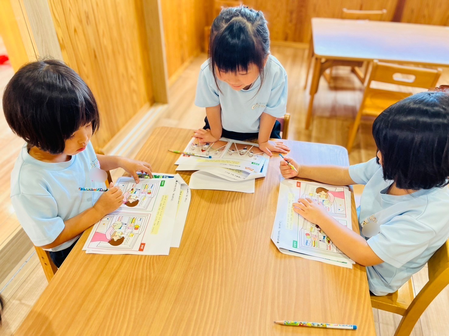 プリント学習では、まちがいさがしや点つなぎをしました🤸♀️一つ一つよく見て丁寧に1枚ずつ進めることが出来ました👏